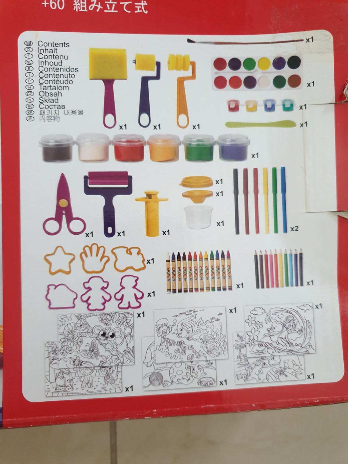 nepoužitá, ceruzky, fiksky, pastelky, vodové farby, plastelina, vykrajovátka, omalovanky, nožnice, valčeky...píše od 4 rokov