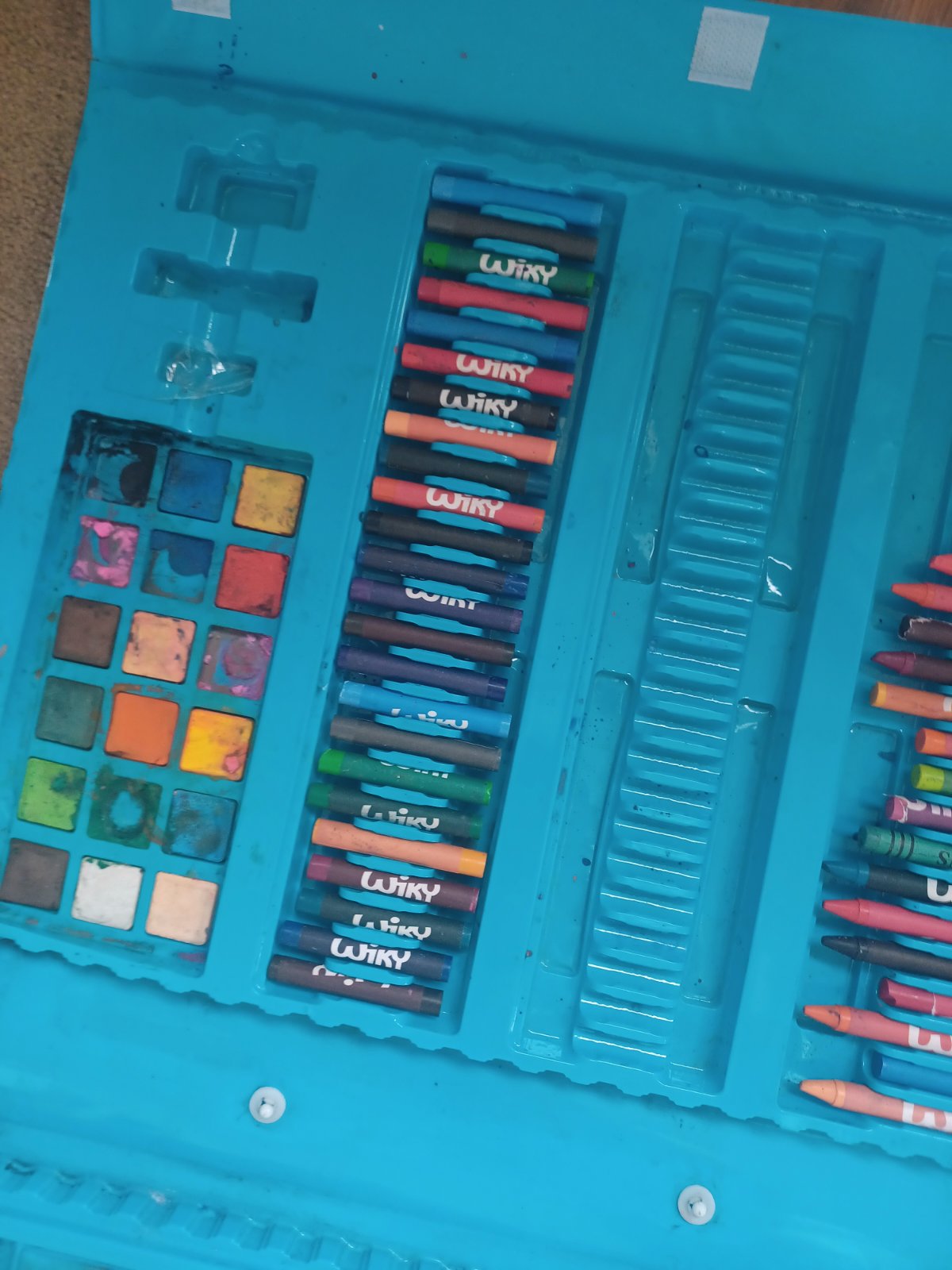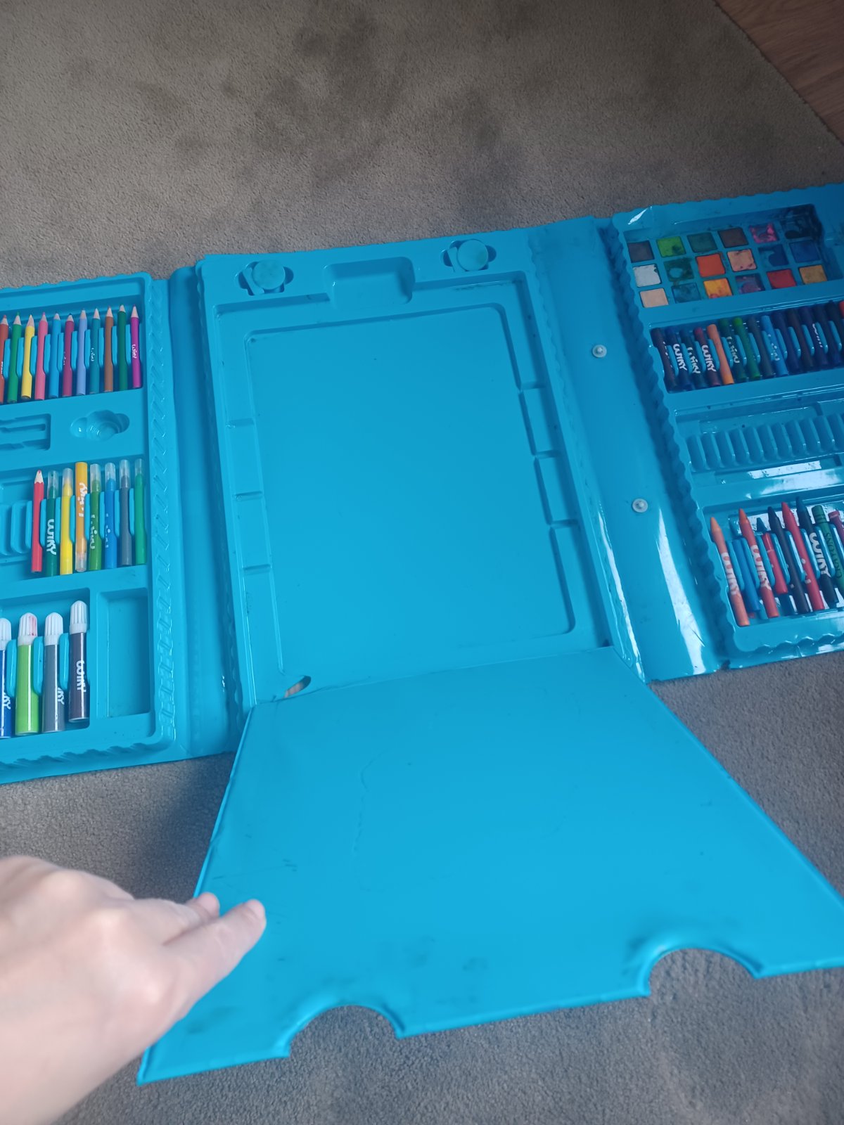 Výtvarný kufrík, pastelky a voskovky sú použiteľné..stav ako na foto.