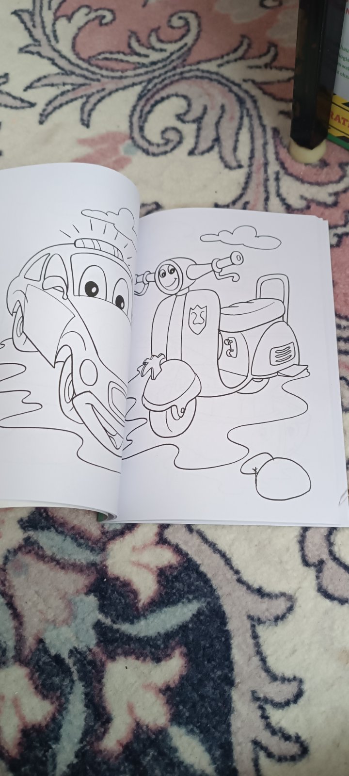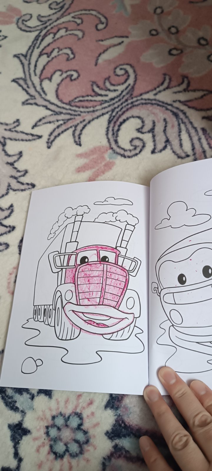 Malá omaľovánka autíčka, dva obrázky omalovane.