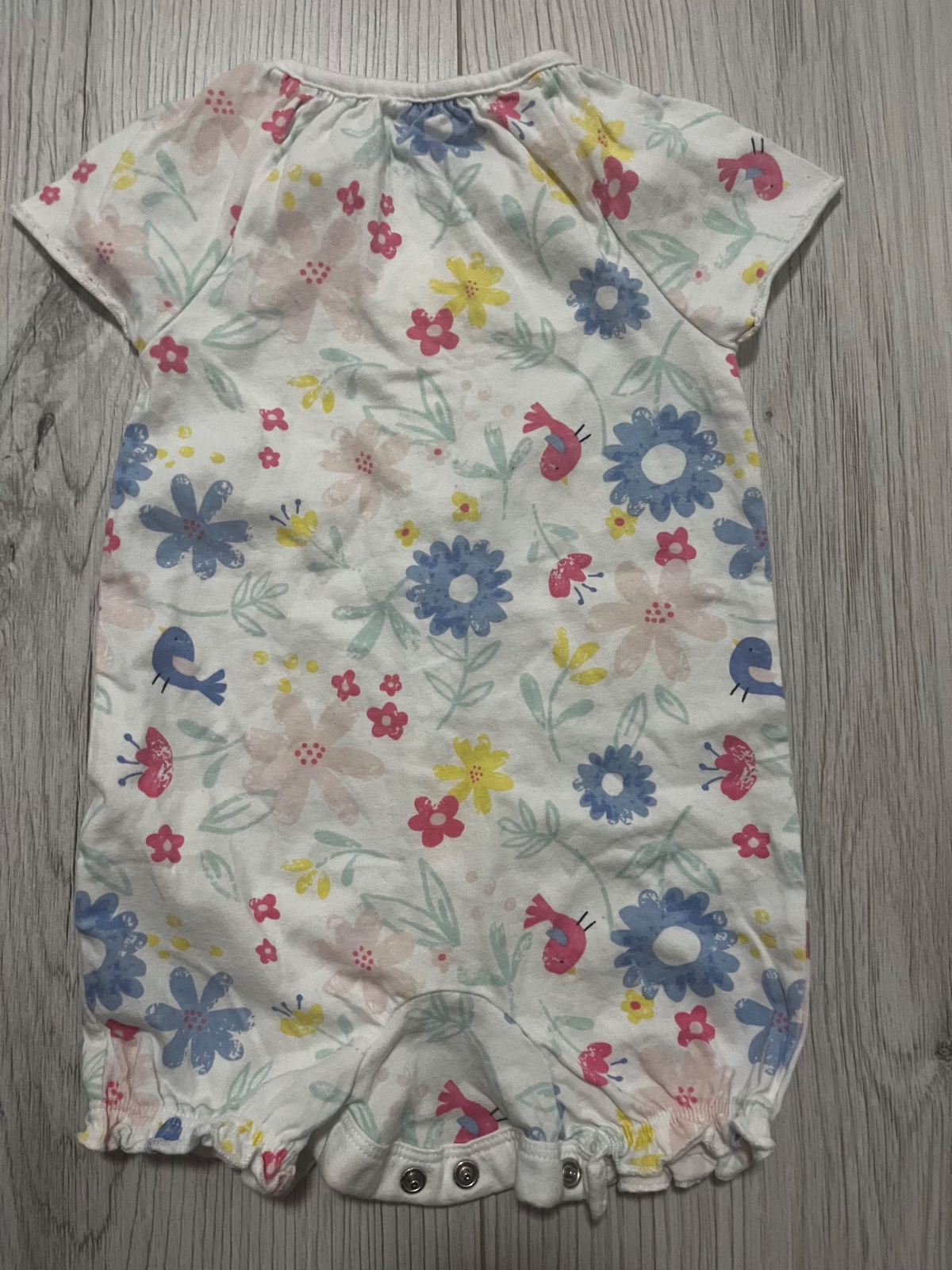 Predám kratkorukavovy letný overal s farebným vzorom kvietkov a vtáčikov. Overal sa zapína vpredu na cvoky. Značka: F&F, veľkosť: 68 (3-6 mesiacov).