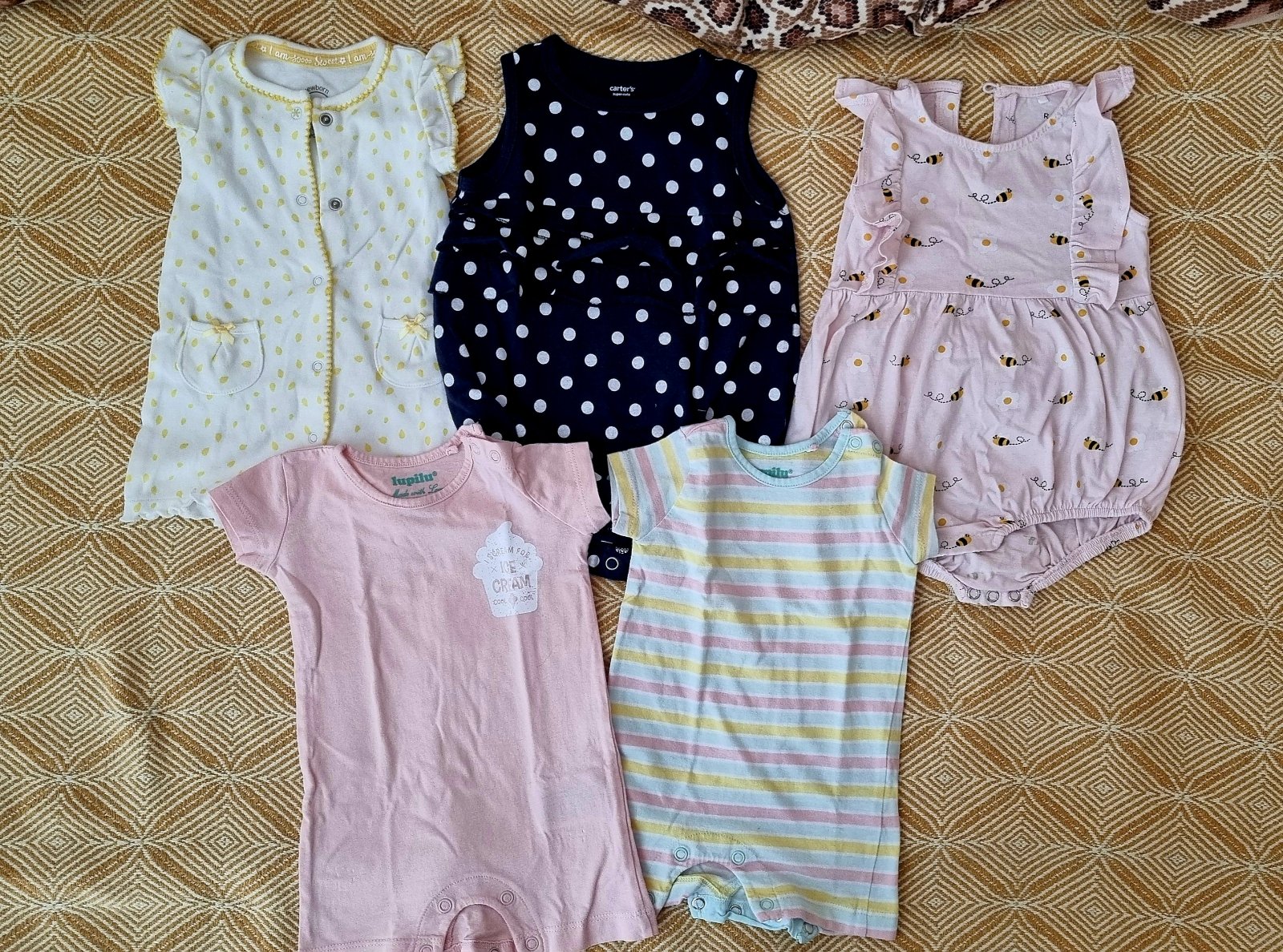100%bavlna,malo pouzivane, to tmavsie iba raz oblecene, je tam pisana velkost 62/68 cena za obidve +postovne KUK na moj bazarik