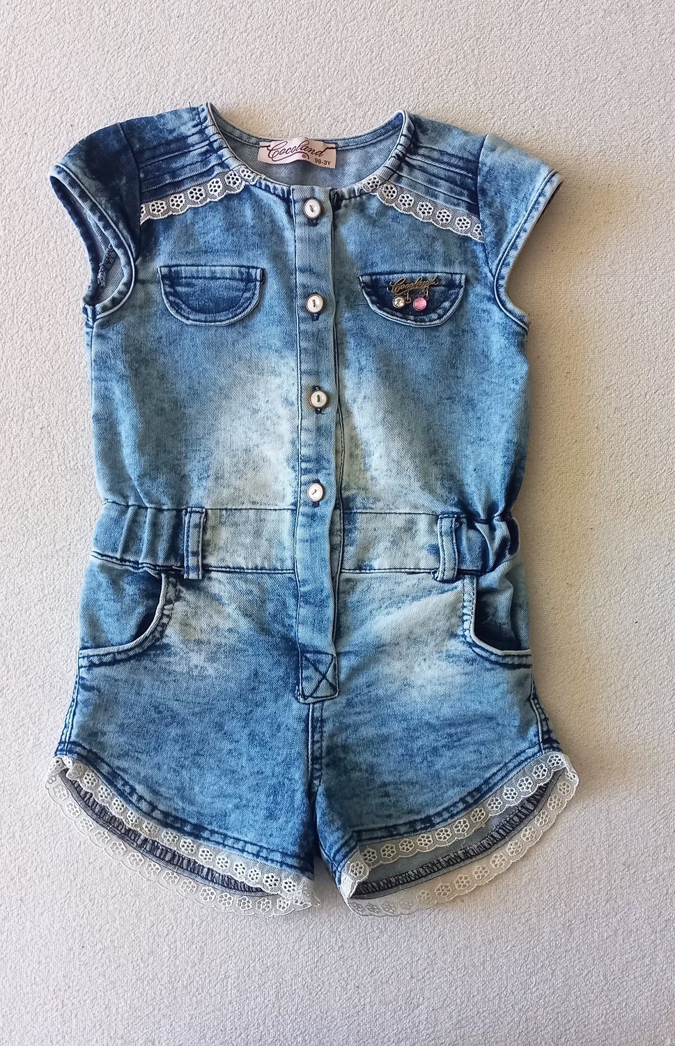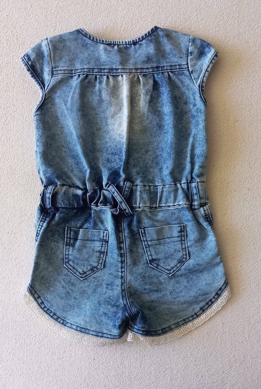 Letný rifľový overal, veľkosť 98, rozmery sú na fotkách. Párkrát oblečený, nepoškodený, top stav. Máme viacero detských vecí, môžete si zostaviť vlastný balíček. Pri kúpe viac vecí, sa rada dohodnem na zľave.