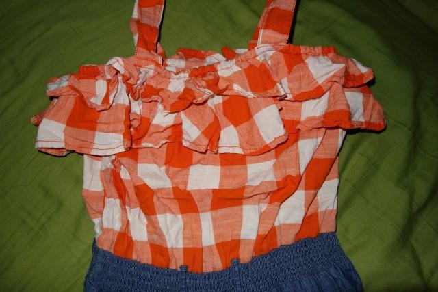 Rozmery: celkova dlzka od pliecka po koniec nohavice: 78cm, dlzka od pleca po rozkrok: 75cm, dlzka nohavicky od rozkroku po spodok: 9,5cm, sirka pod pazuskami: 33cm (okolo su gumicky, este sa dost roztiahne)