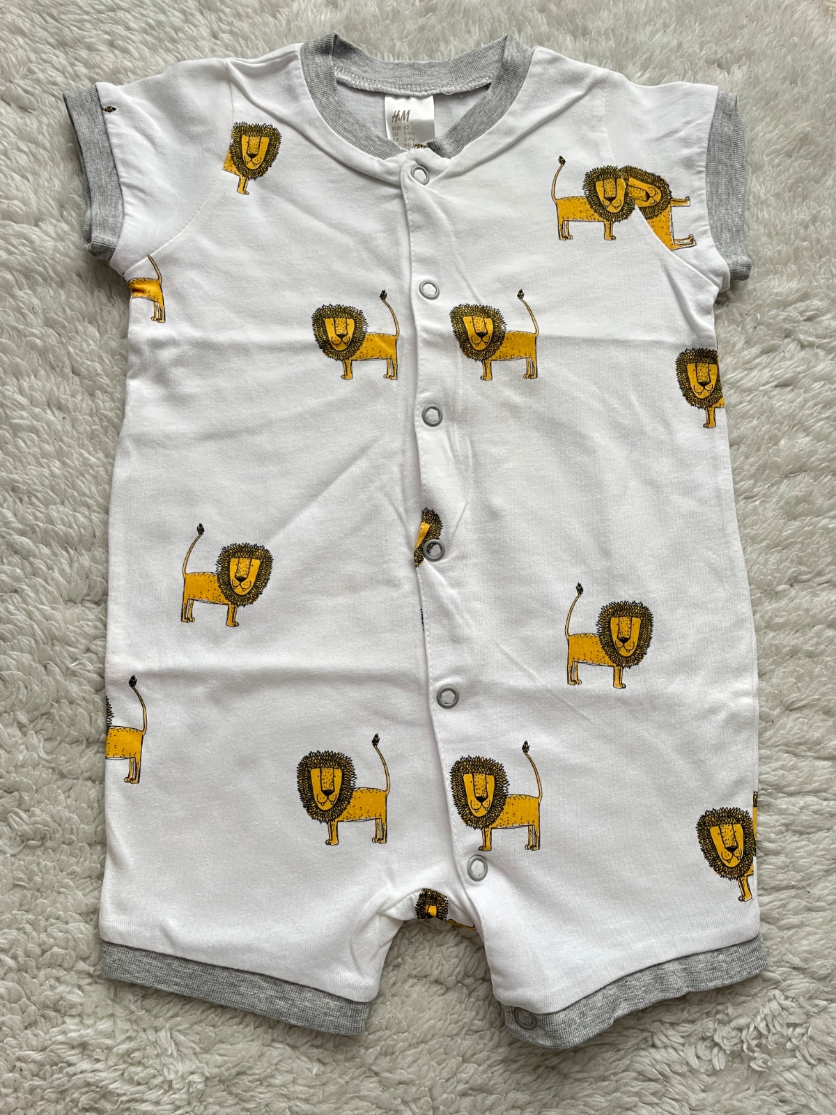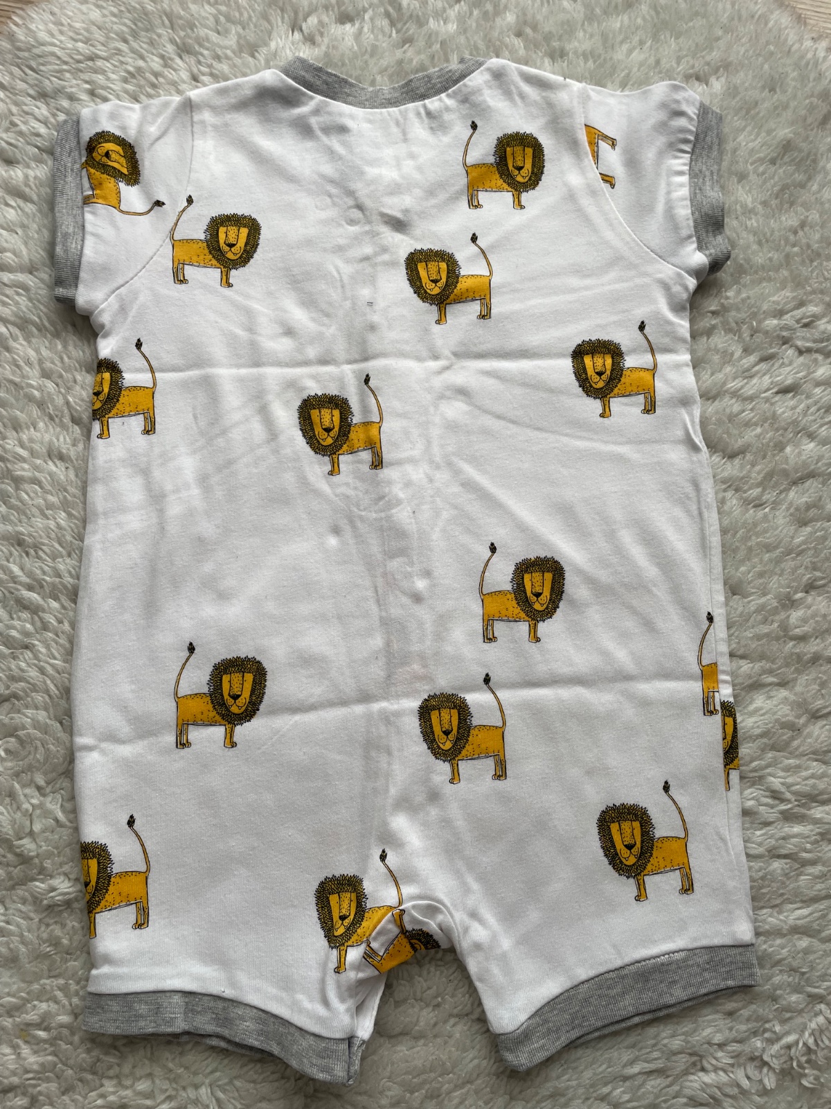 Letne bavlnene pyzamka - svetlosede s nazehlovackou levika, na cvok pri krku a medzi nozkami, biele s levikmi celocvockove. Malo nosene, bez poskodenia