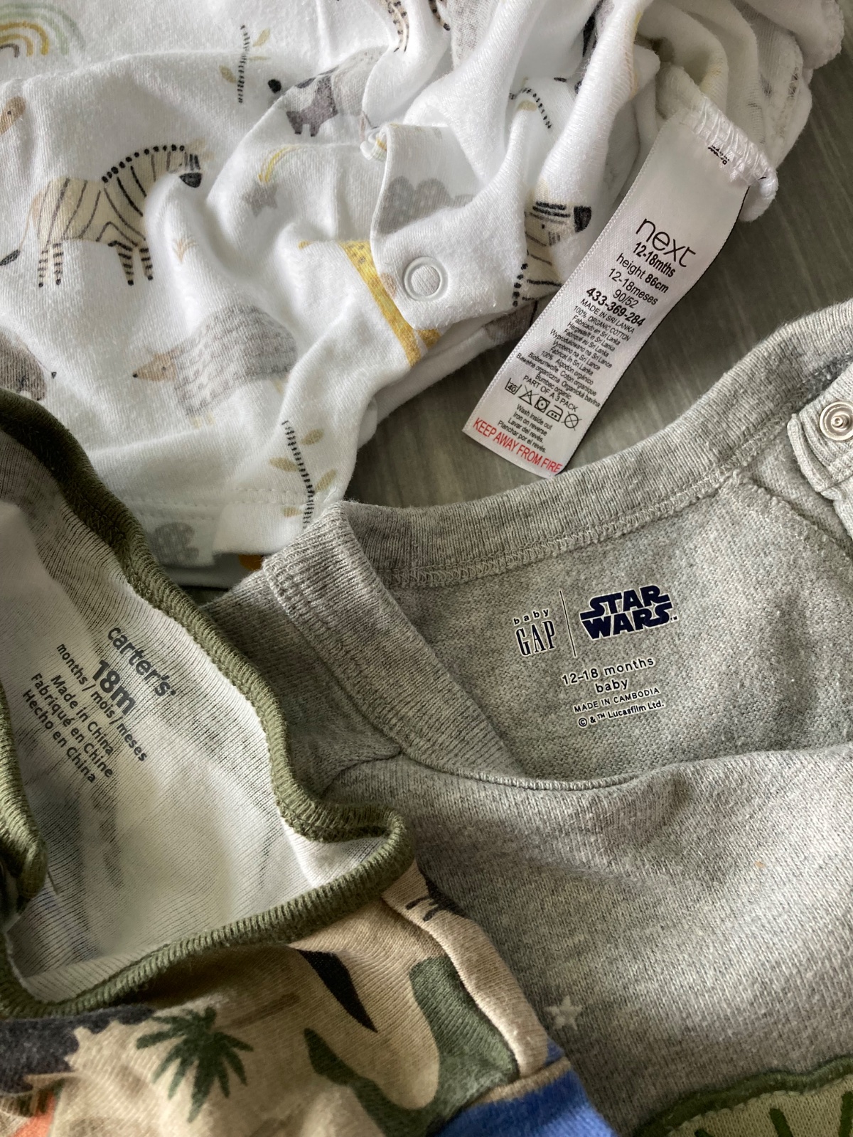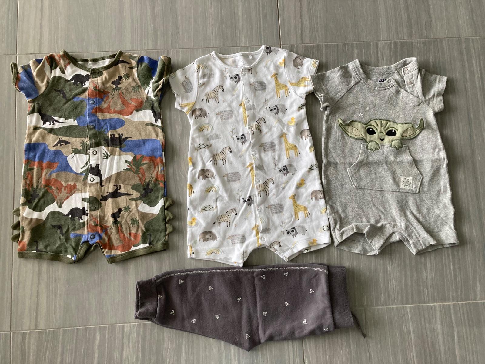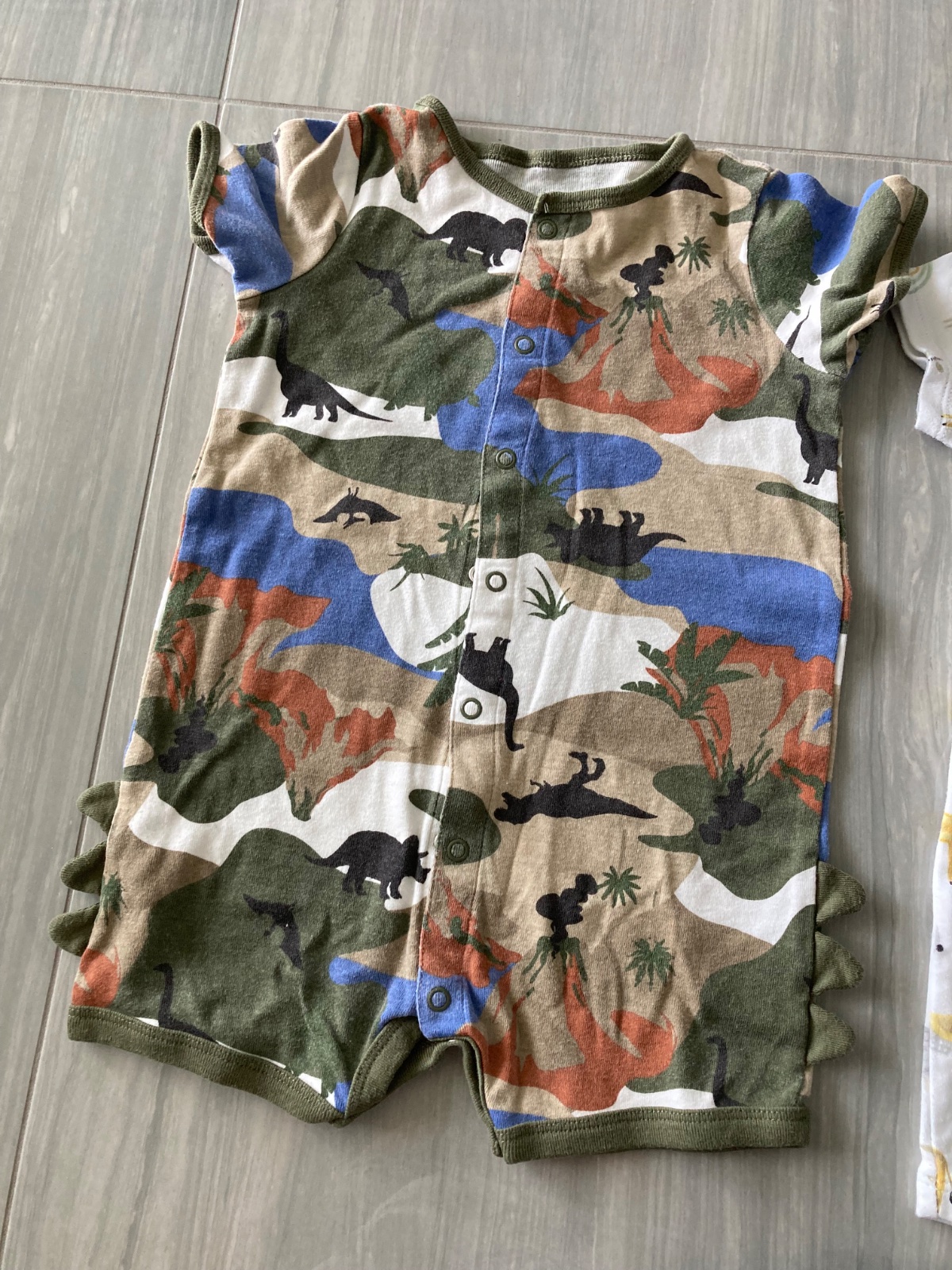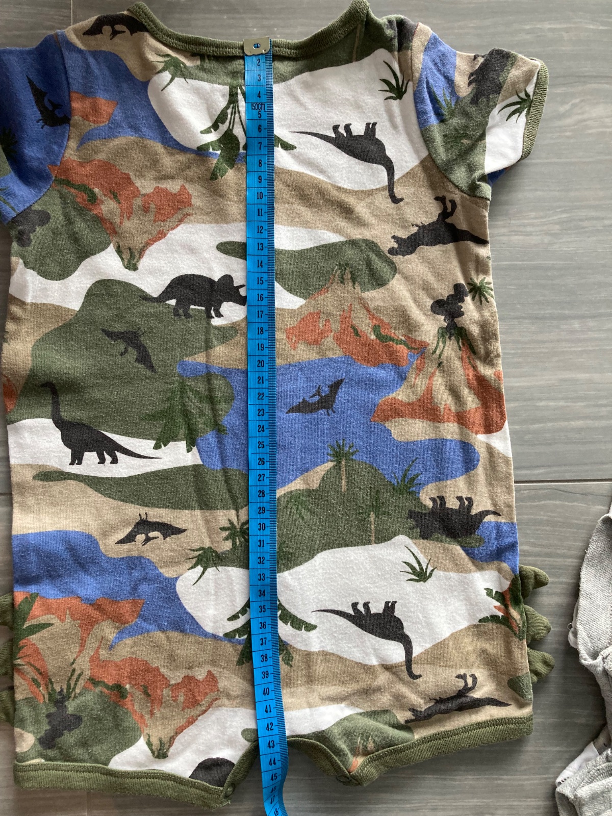 3ks bavlnené značkové overaly/letné pyžamká. Dĺžka cca 39-40cm. Dino Carters 18m, zvieratkový Next 12-18m, Gap s ufónom 12-18m. Bez poškodení. Navyše šedé tepláčiky 12-18m.