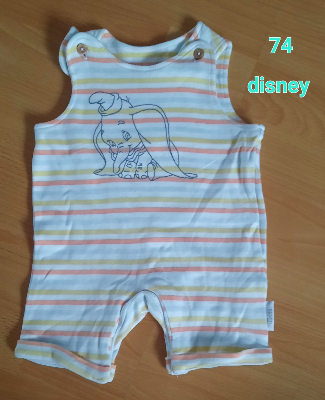 Súprava na leto. Veľkosť cca 74. Nenosená. Tričko dĺžka rukáva od krku 17 cm, celková dĺžka 30 cm, šírka pod pazuškami 2 x 27 cm. Body šírka 30 cm, celková dĺžka 42 cm. Cena oboch spolu 2 €