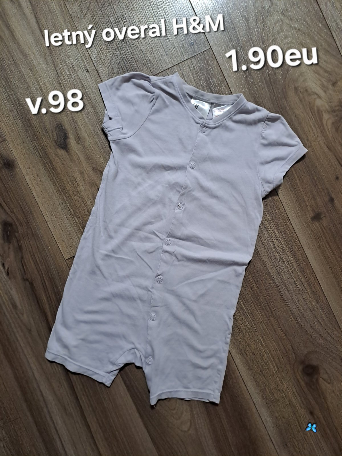 Predám letný overal značky H&M, veľkosť 98. V prednej časti sa overal zapína na cvoky. Overal je bez poškodenia, ako nenosený.