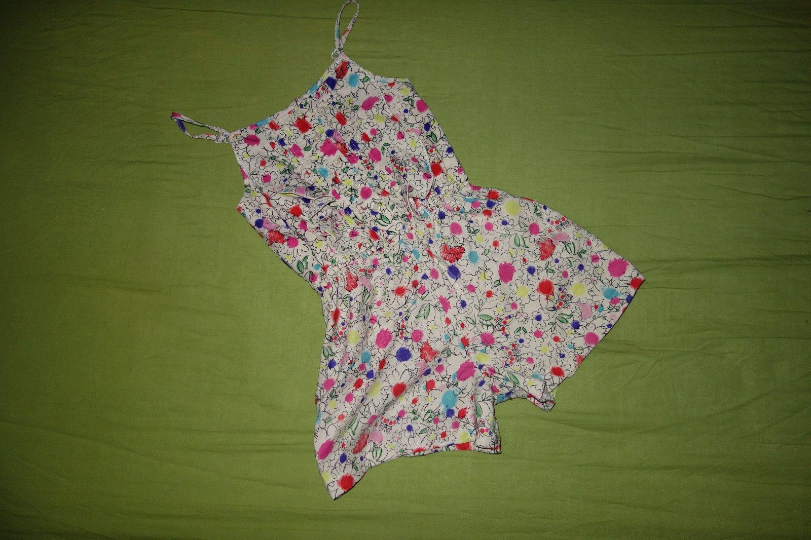 Krasny letny overalcek vo velmi dobrom stave- na zadocku malicko pozatahovane, vobec nevidno. Ma putka na opasok. Je podsity, putka sa daju uplravovat.