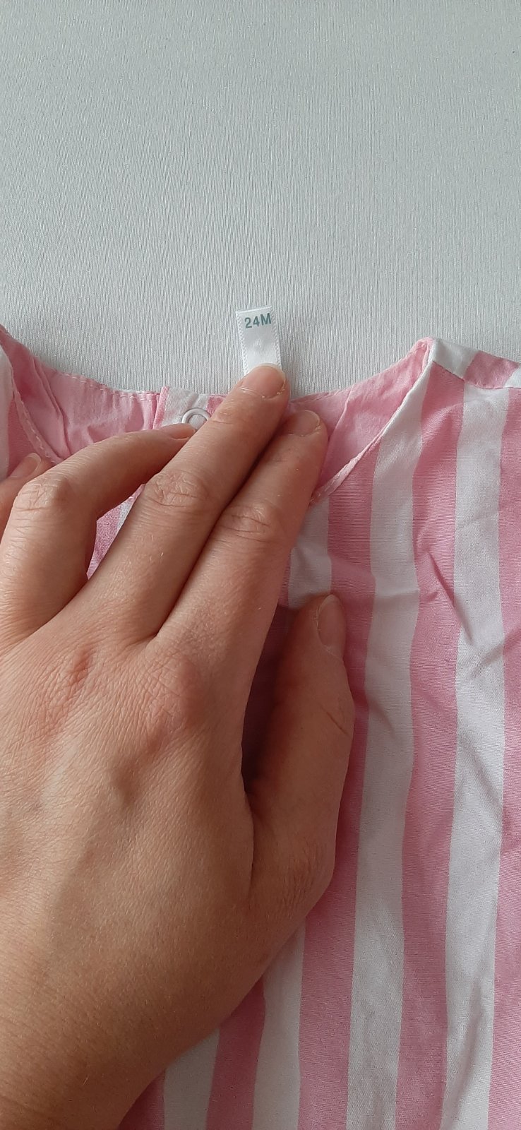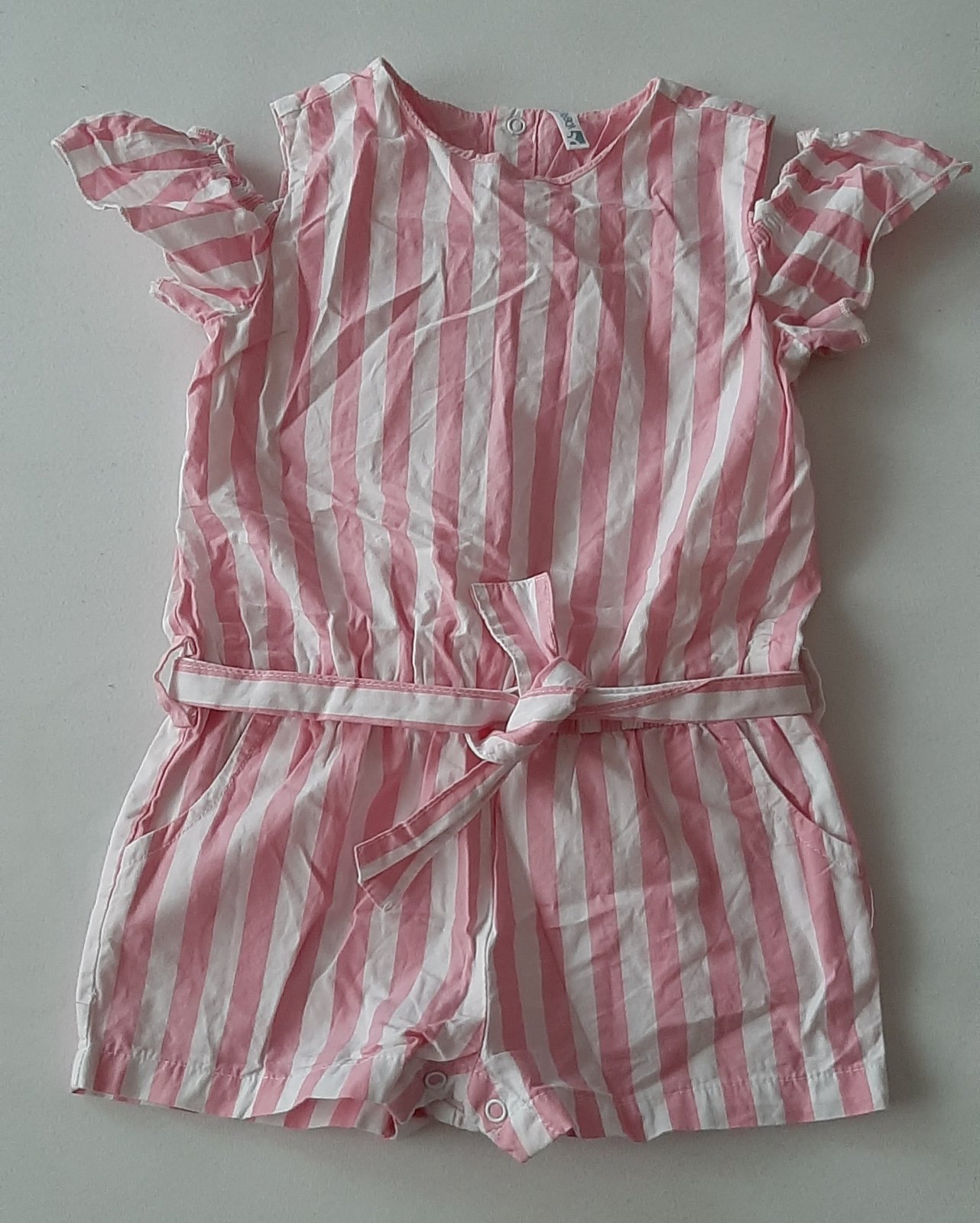Dievčenský overal, v top stave, bez poškodení a fľakov. Z kvalitnej, vzdušnej látky. Taliani píšu veľkosť na 24 mesiacov, ale sedí skôr na 1,5 roka. Dĺžka overalu je 44 cm.