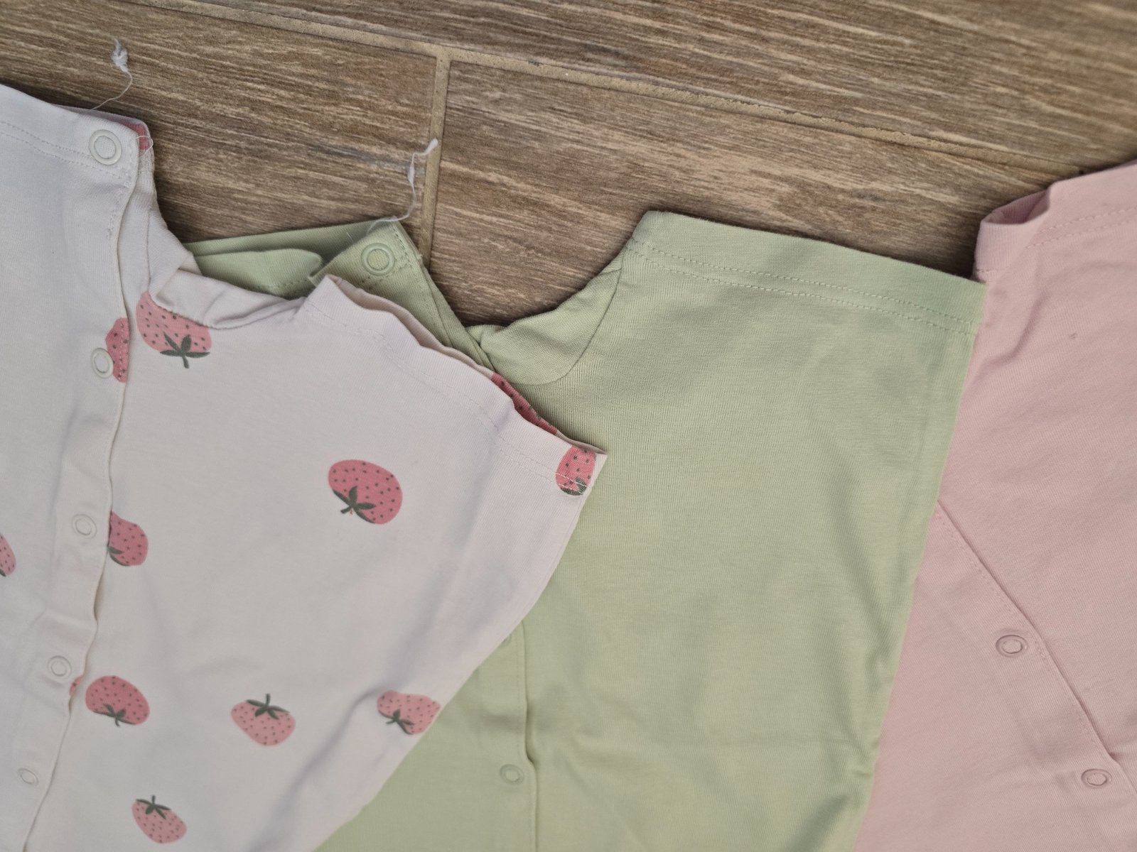Predám krásne letné overaly H&M veľkosť 62 vo veľmi dobrom nosenom stave. Fialova supravicka (horný rad) bez poškodení. Ružová supravicka (dolný rad) -biele s ružovými kvietkami ma natrhnutý kúsok ...