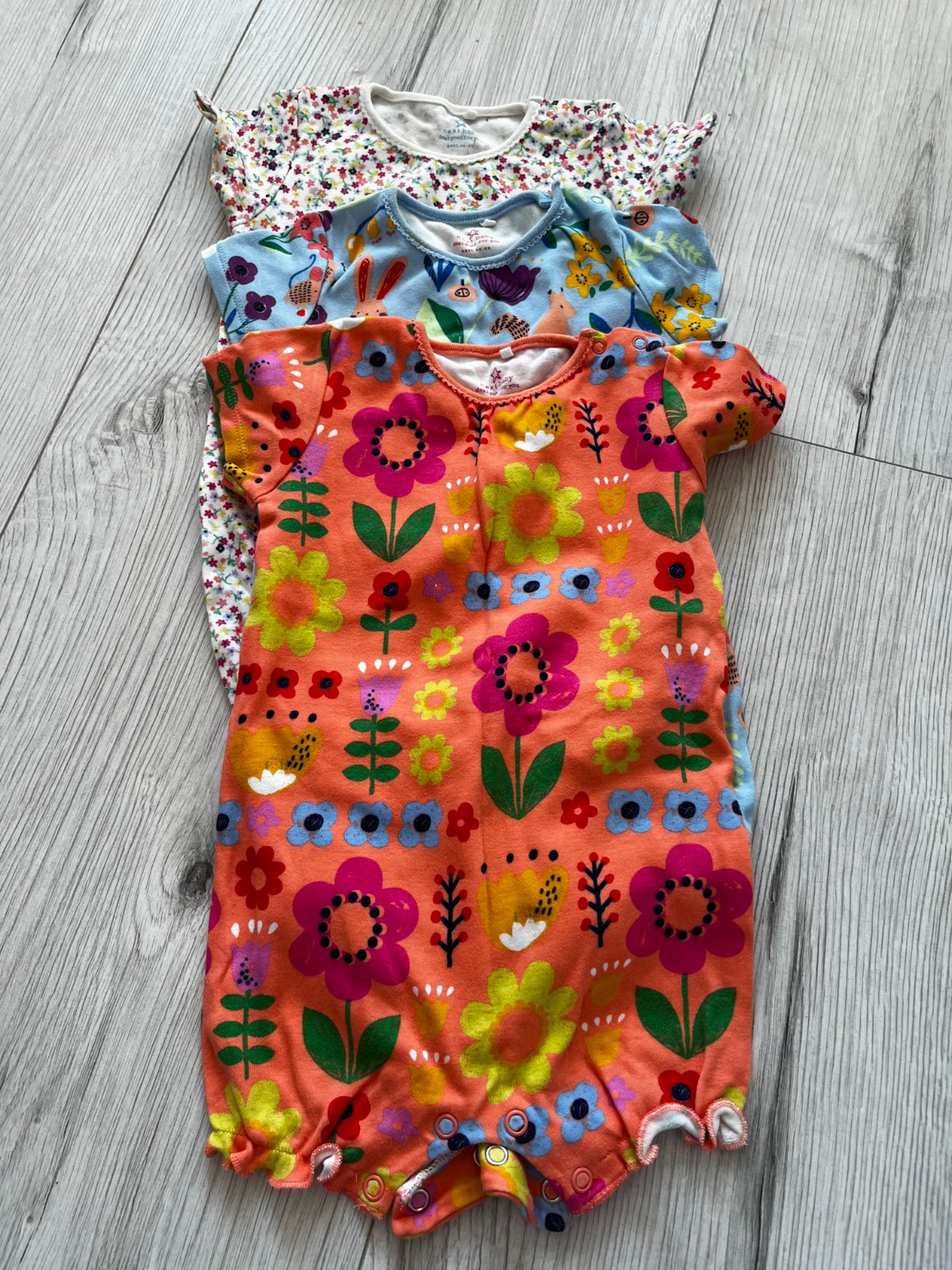 Predám trojbalenie letných overalov s krátkym rukávom značky Next, veľkosť: 74: