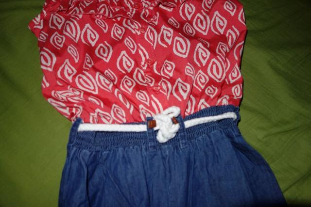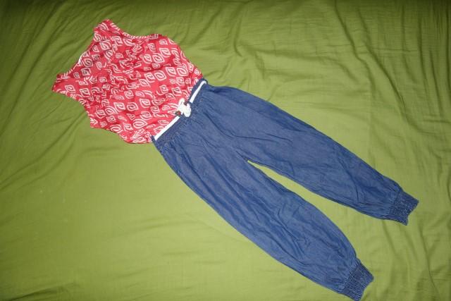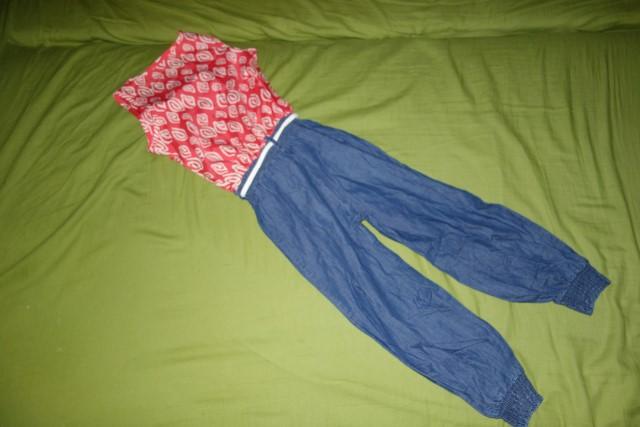 Krasny overalcek na leto vo vybornom stave. Spodok je riflovy- z uplne tenkej riflovinky.