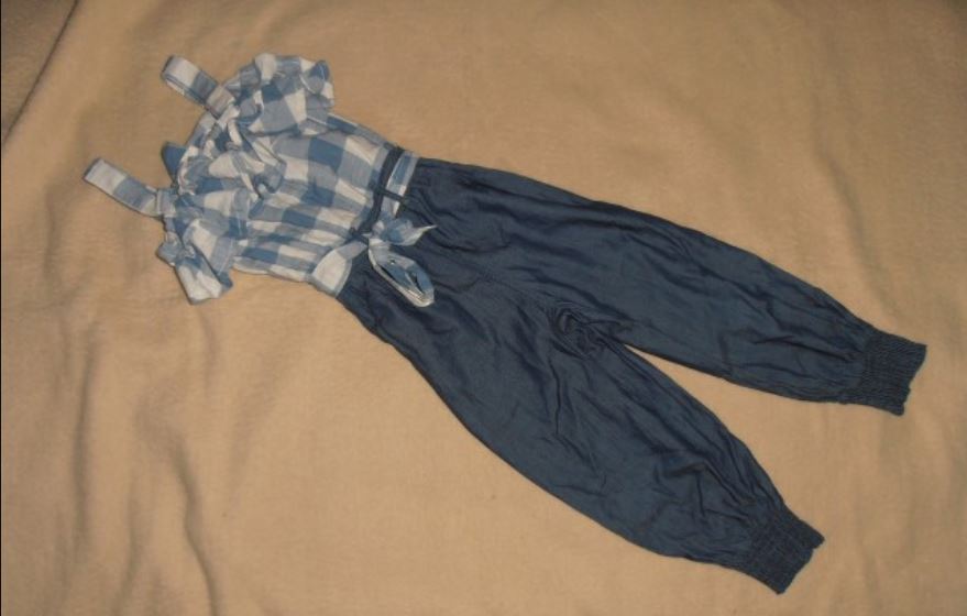 Rozmery: celkova dlzka od pleca po spodok nohavice: 95cm, dlzka nohavice od rozkroku: 40cm, sirka pod pazuskami: 23cm (je tam gumicka, este sa roztiahnu)
