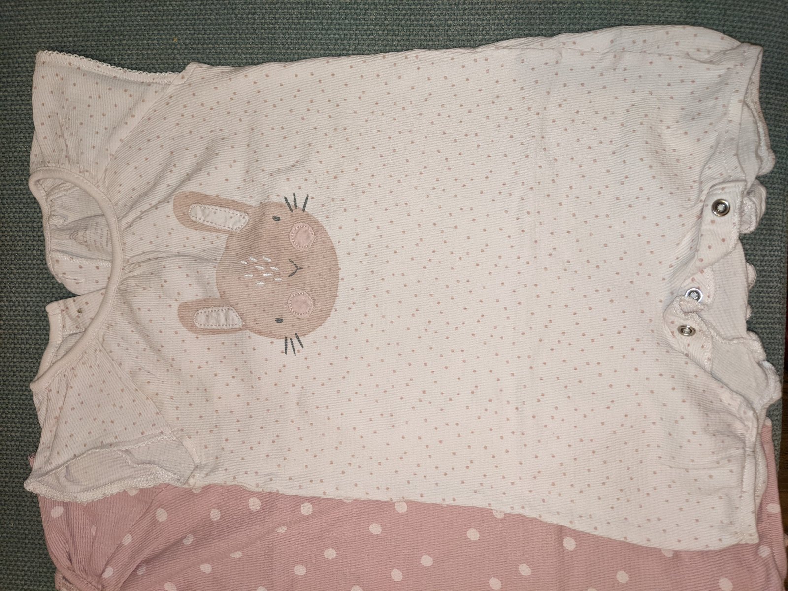 Veľkosť 6-9 mesiacov, nepoškodený, žiadne známky nosenia, ľahké obliekanie - medzi nohami sa dá jednoducho rozopnúť
