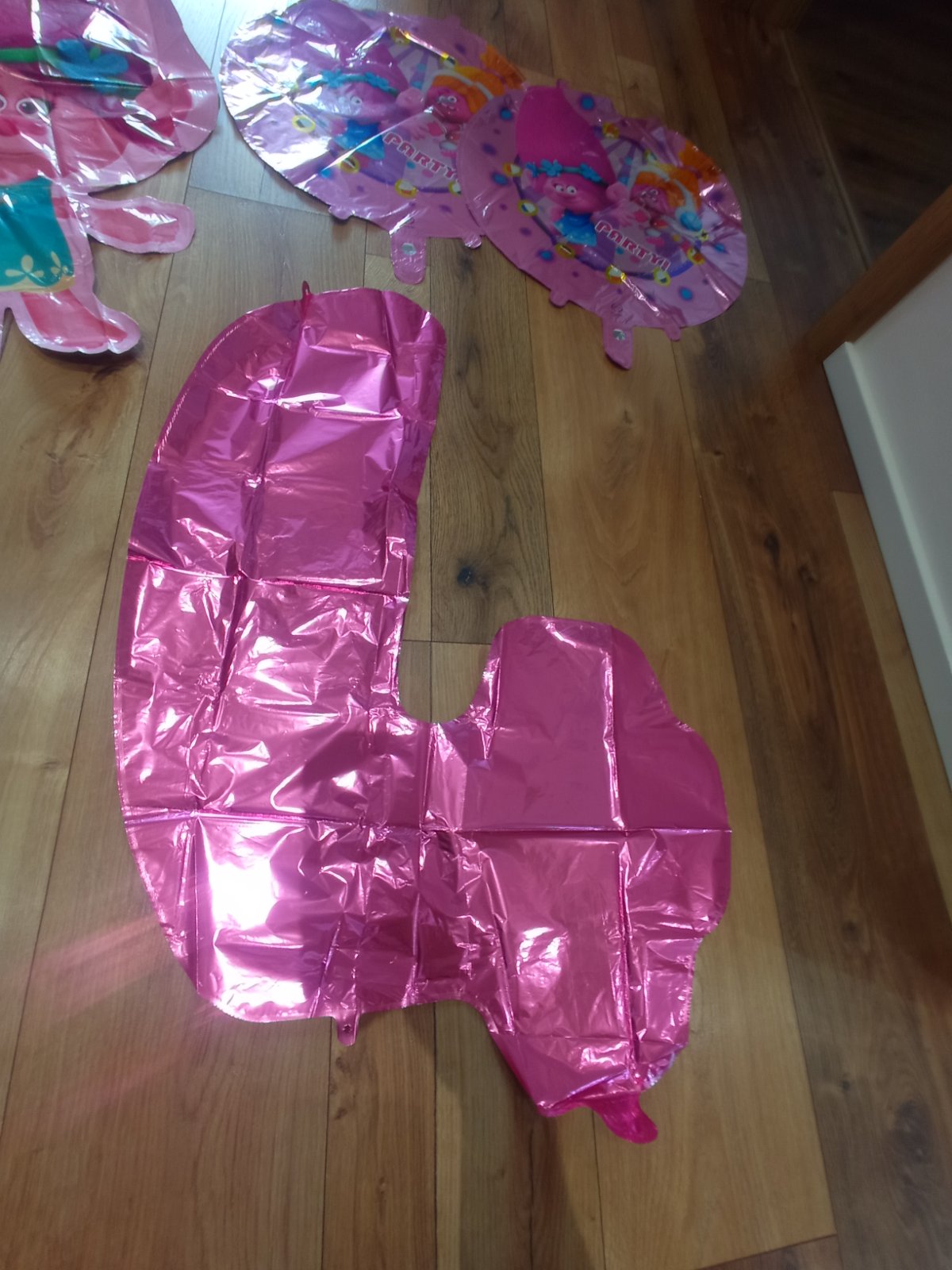 Nové neboli nepoužité foliove balóny 4 kusy dokopy. Obsahuje jednu poppy, dvakrát okrúhly balón a jedenkrát číslo 4. K cene je potrebné pripočítať poštovné.