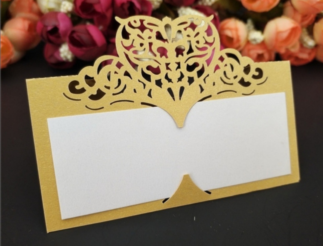 Predám svadobné menovky, sú zlatej farby, nové nepoužité. Mám 50 kusov. Cena za jeden kus je 0,15€.
