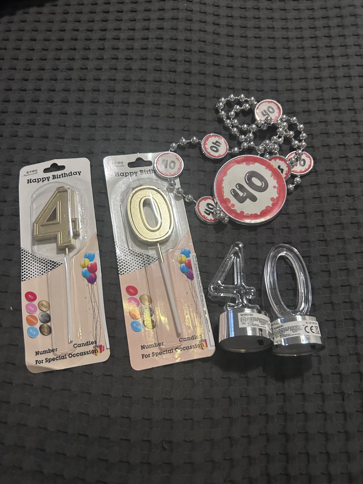 Použité doplnky na oslavu. Set obsahuje: Nápis Happy Birthday - dĺžka cca 2 m Nepoužité servítky - 10 ks Sviečky Happy Birthday 1x zapálené Sviečka číslo 7 1x zapálená
