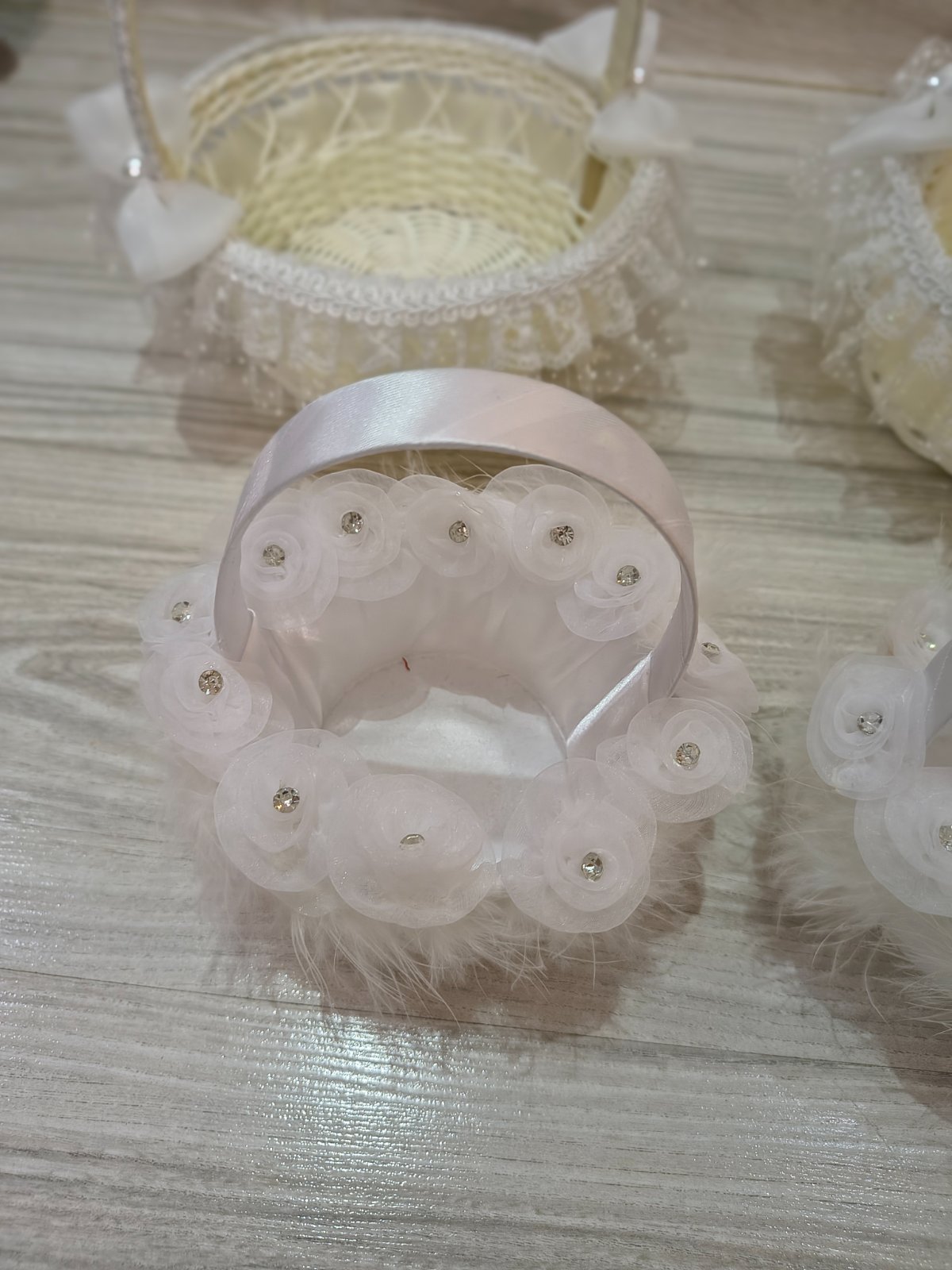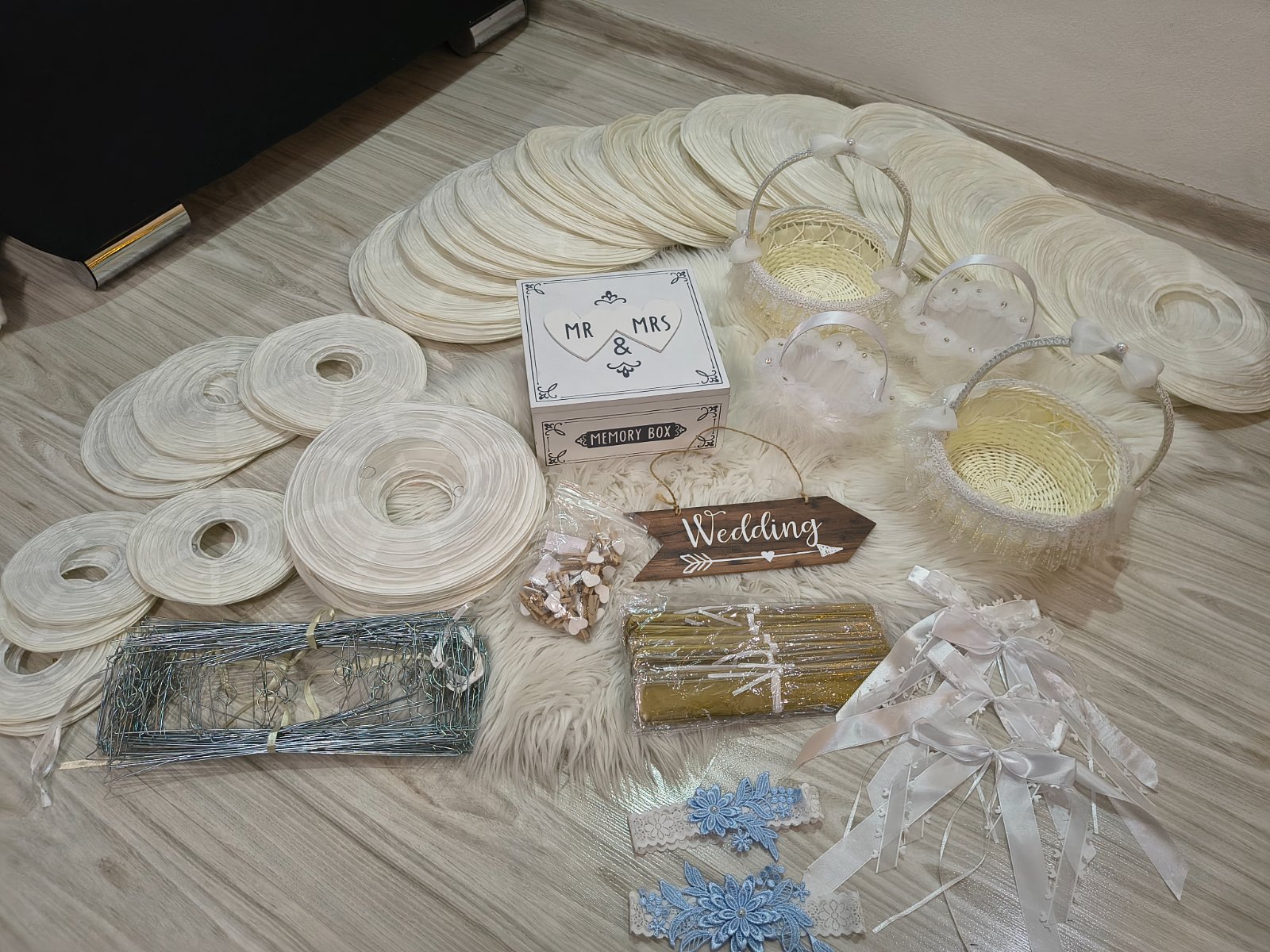 Predám nepoužité náramky pre družičky (4ks), 5ks pre mini družičku a nepoužité pierka pre družbov (6ks). Cena spolu + poštovné