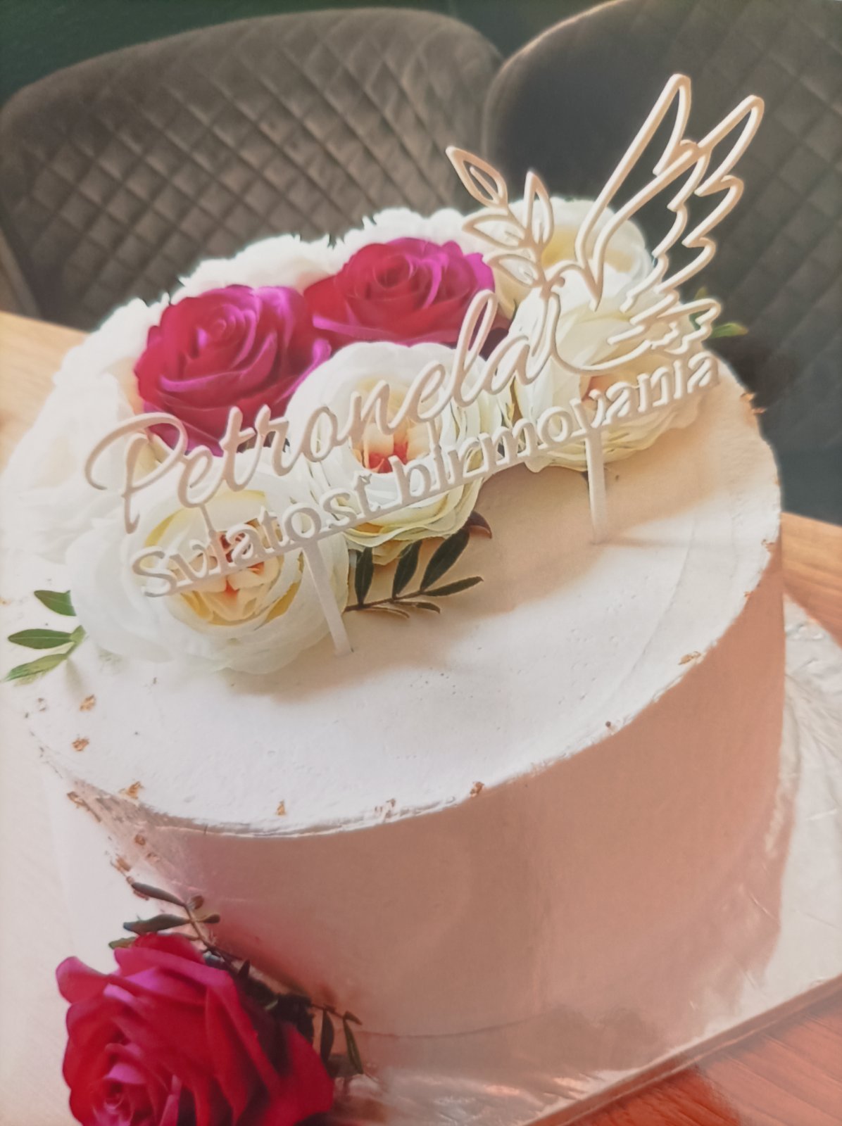 Predám plastove zapichy na tortu. Robene čierny k narodeninam pre dievcatko Natalku k 15 rokom lebo túžba bola vidieť Istanbul a biely k birmovke s birmovnym menom Petronela. Kus 3e