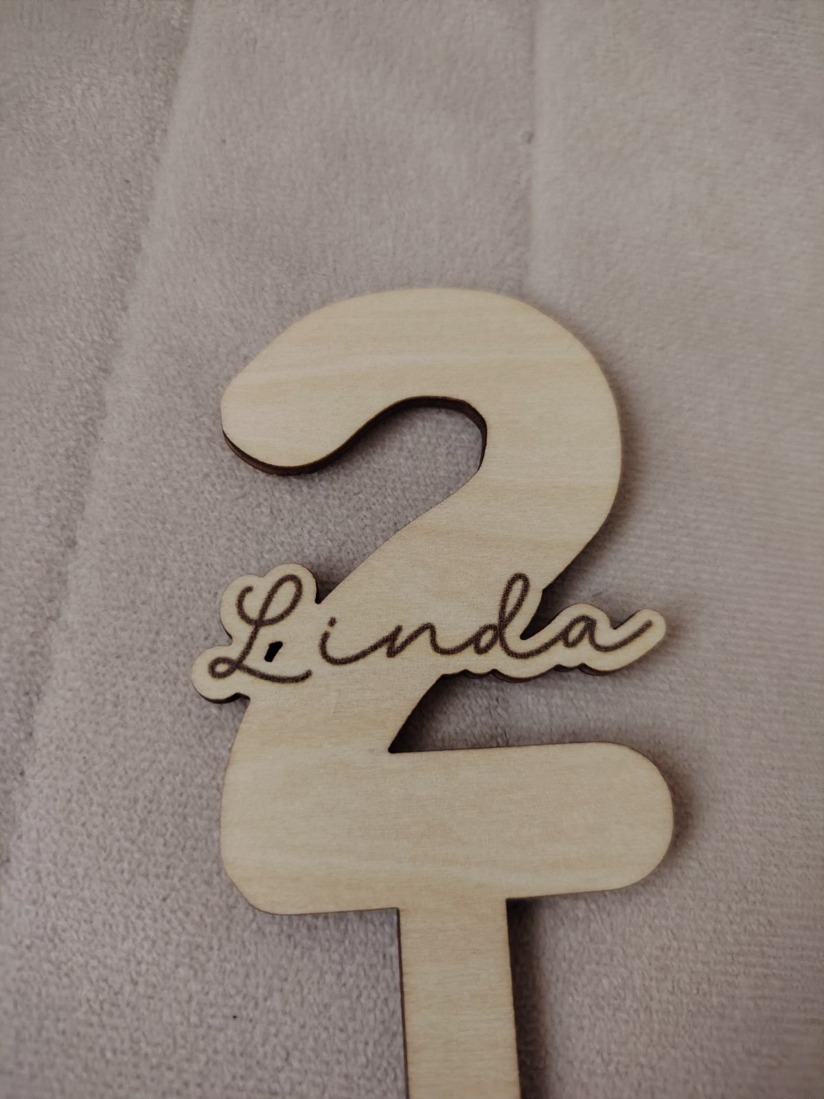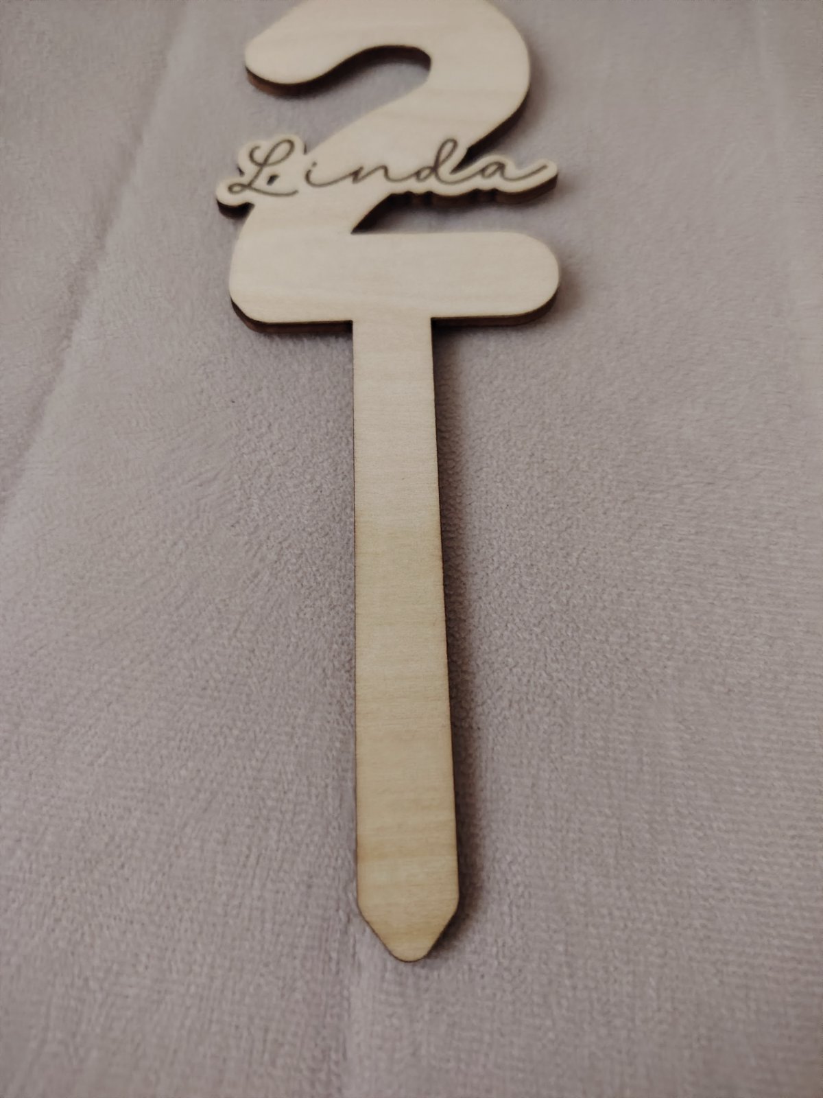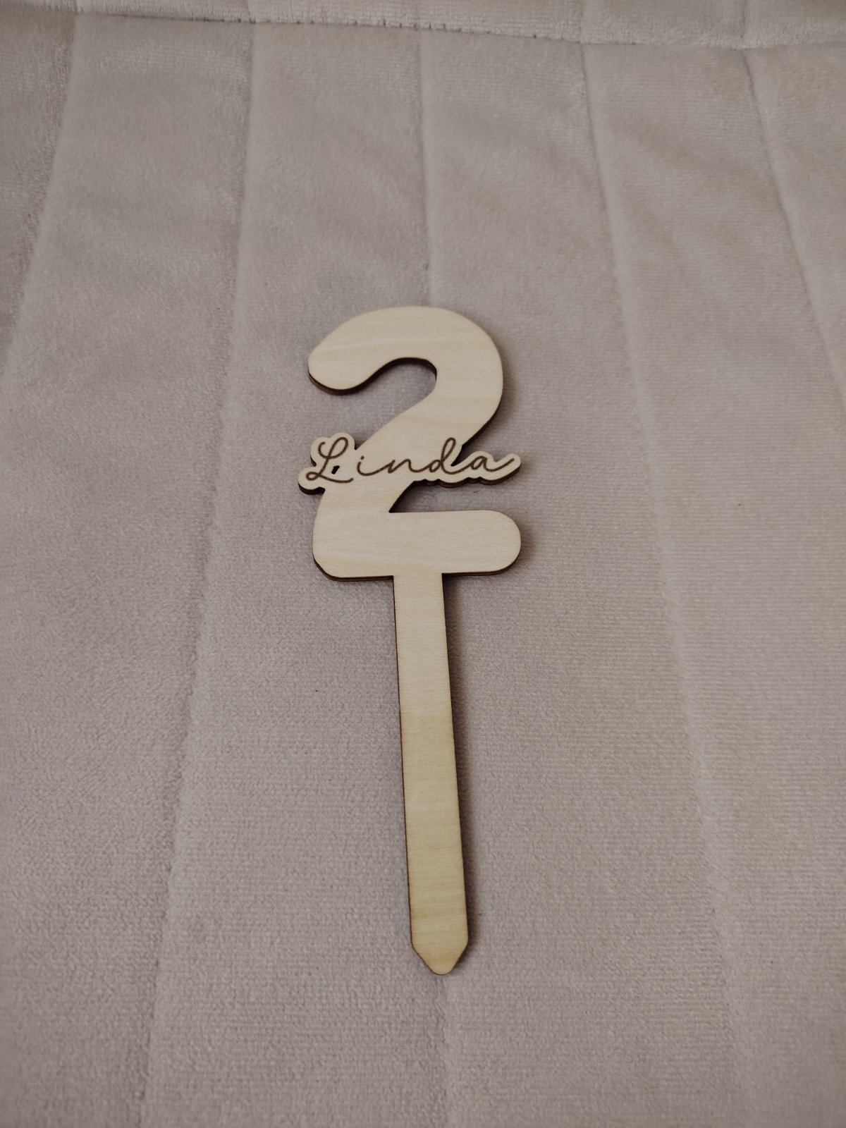 Drevený zápich na tortu na 2 roky s menom Linda