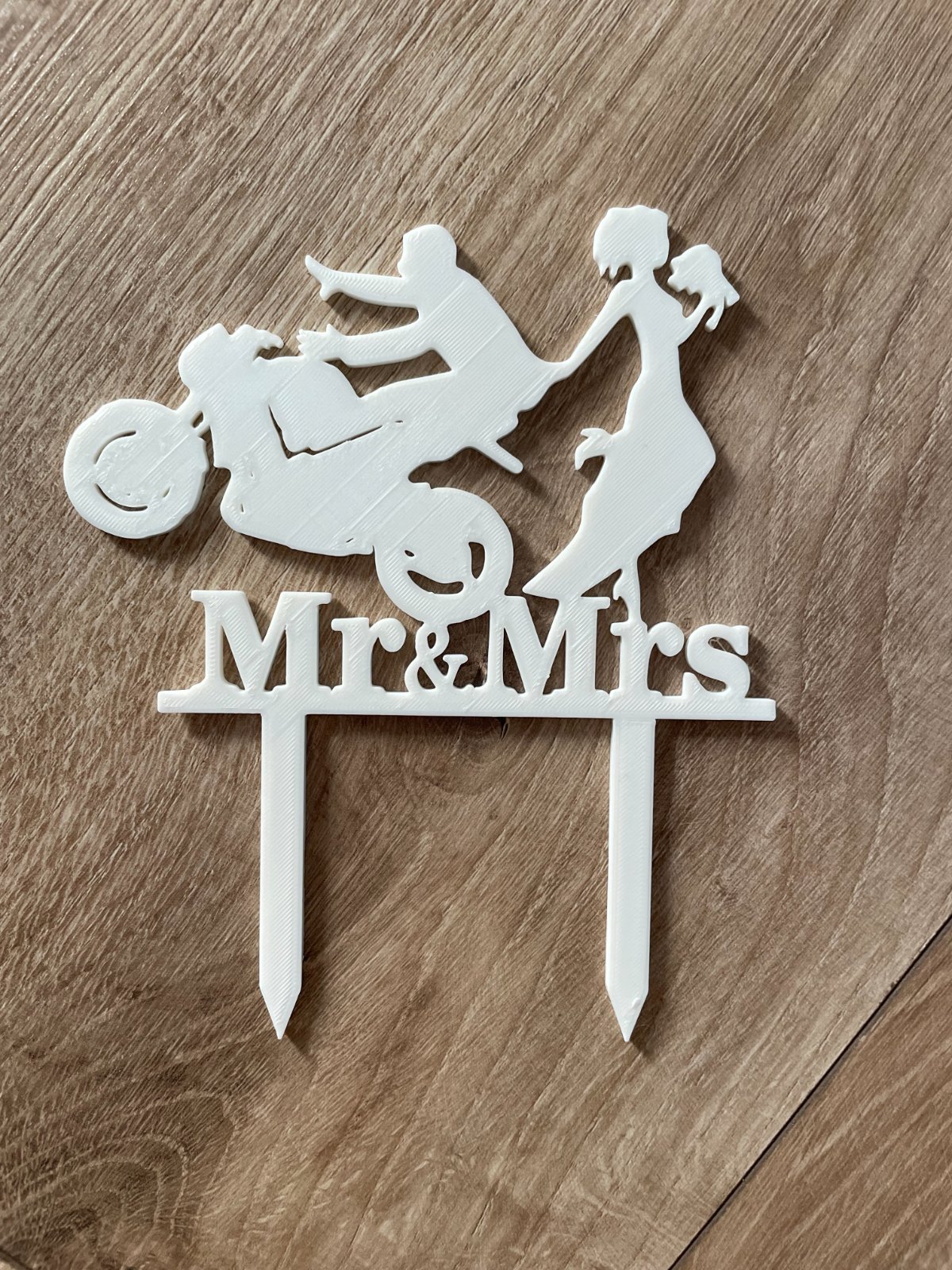 Ponúkam na predaj zápich na svadobnú tortu vhodný pre motorkára. Zápich je nový, vytlačený na 3D tlačiarni. Je vyrobený z nezávadného plastu PLA. V prípade záujmu ma kontaktujte, prípadne môžem vytlačiť aj v iných farbách.