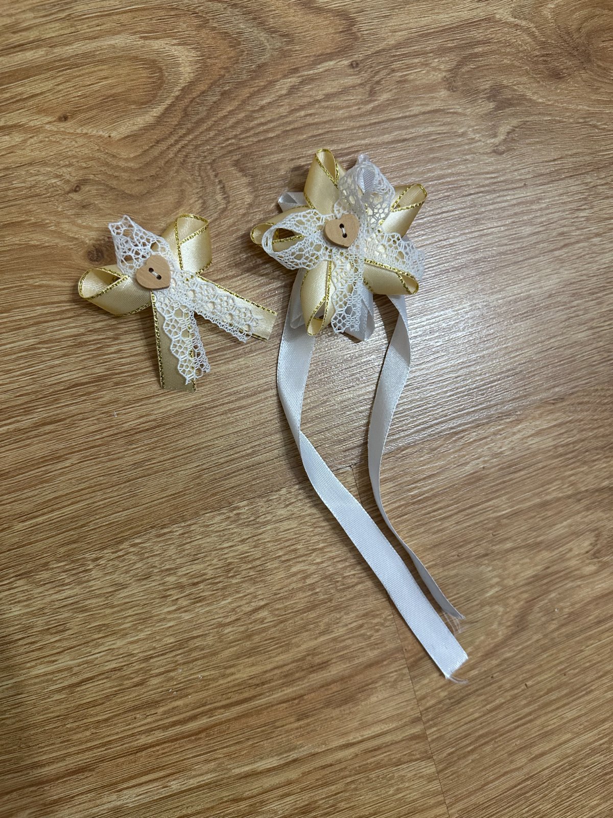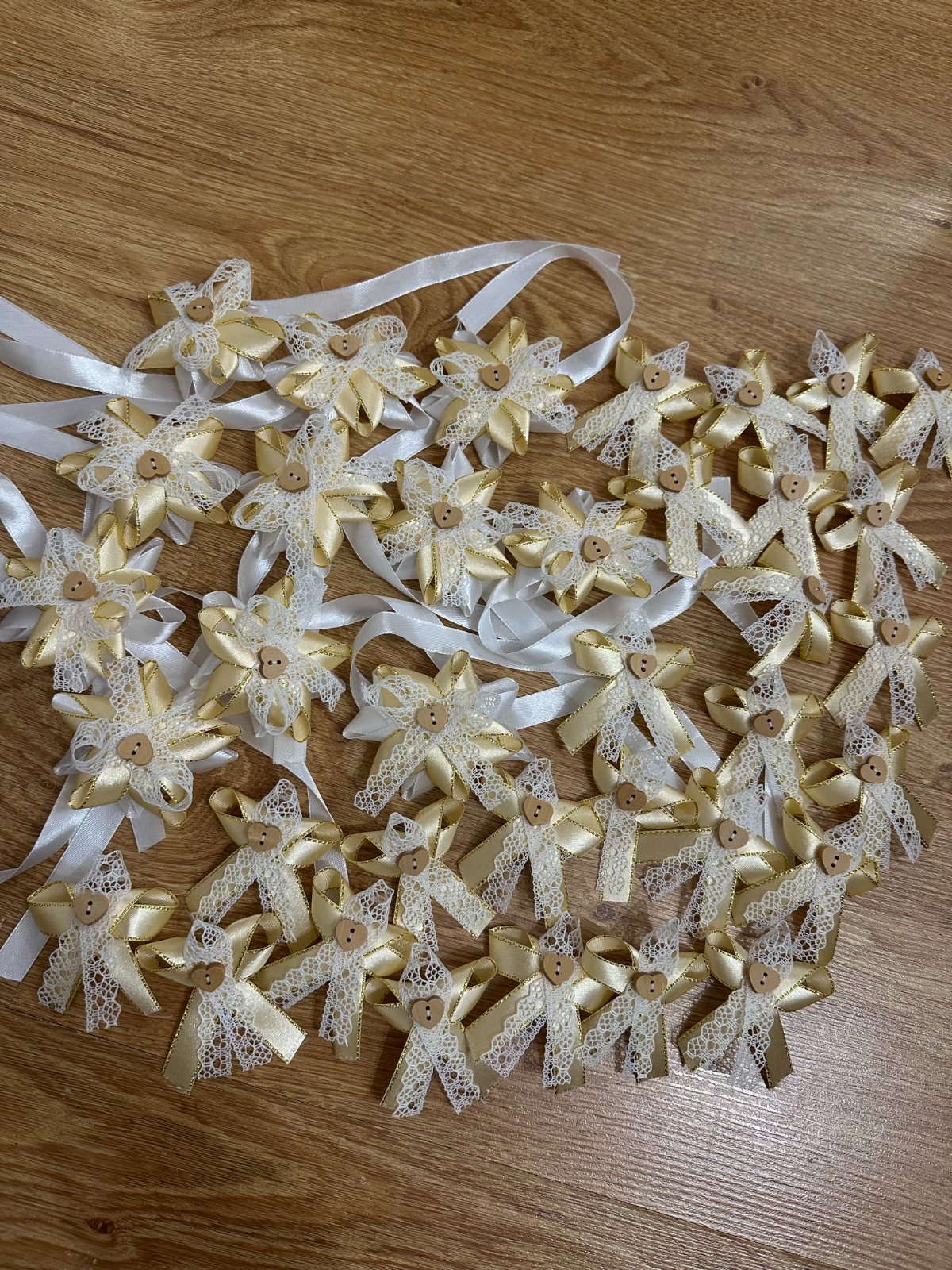 Predám svadobné pierka pre družičky/družbov v zlato-bielej kombinácii.