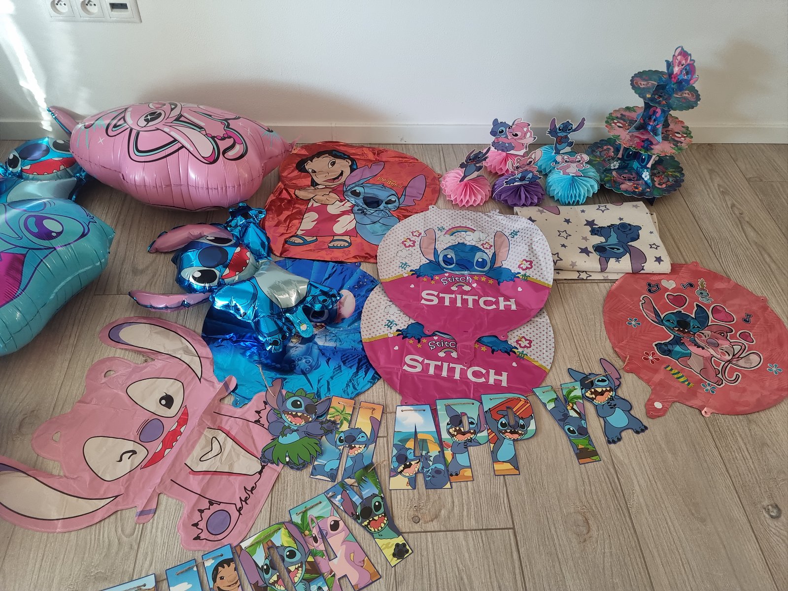 Predam party set pre Stich & Lilo maniacku. Set je pouzity, ale este tam vela ostalo vhodne na dalsiu oslavu. 6 nepouzitych foliovych balonikov, girlanda, behun na stol, poschodovy etazer, 6 ozdobnych postaviciek. V pripade zaujmu vyfuknem aj 10 nafuknutych foliovych balonov, je velka pravdepodobnost, ze sa budu dat znovu pouzit. Cena 15 eur plus posta.