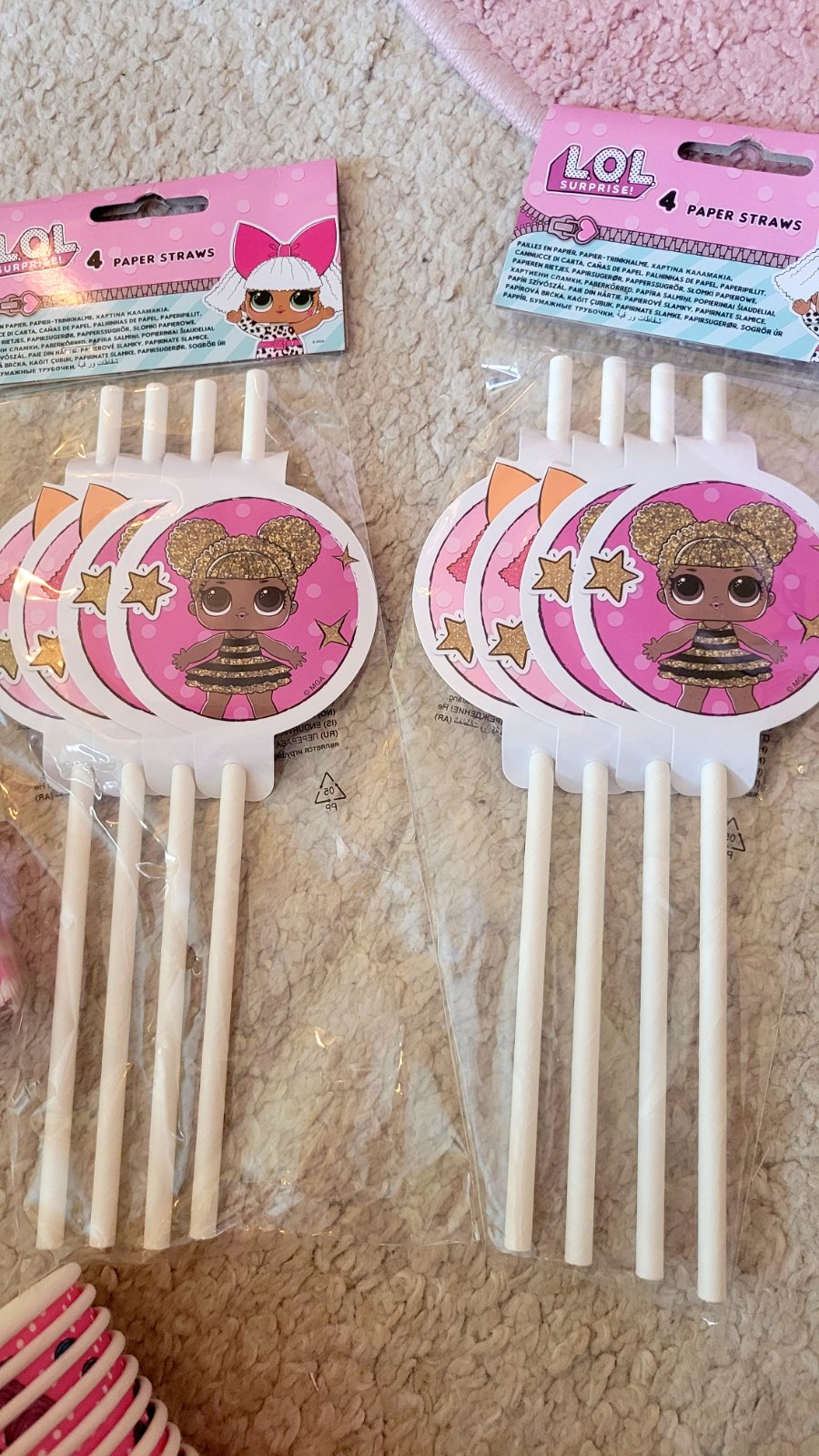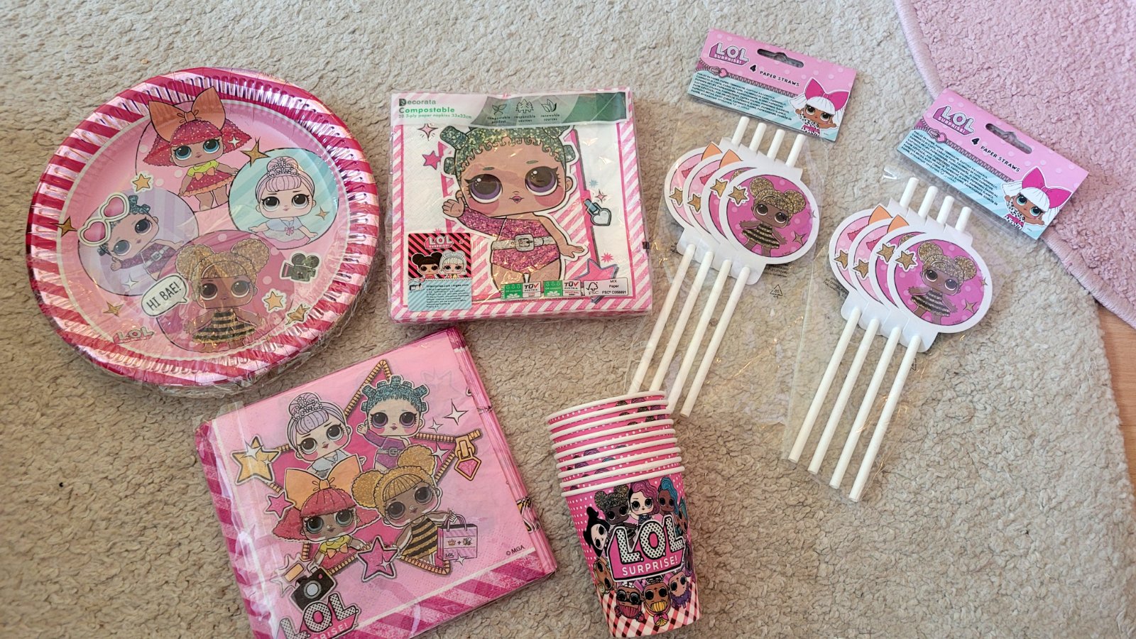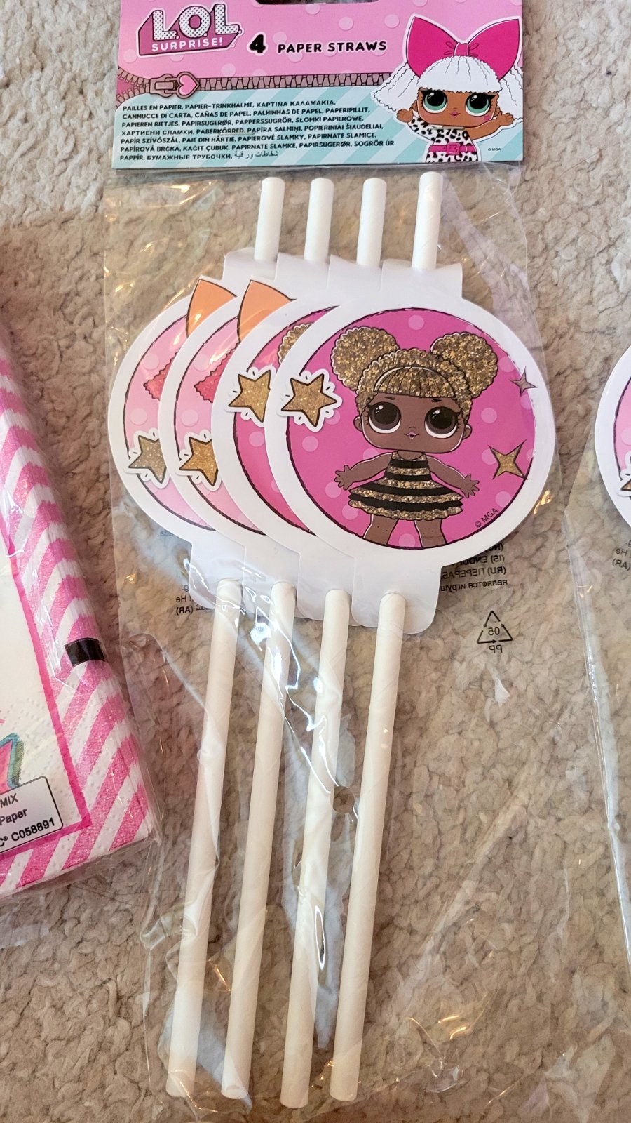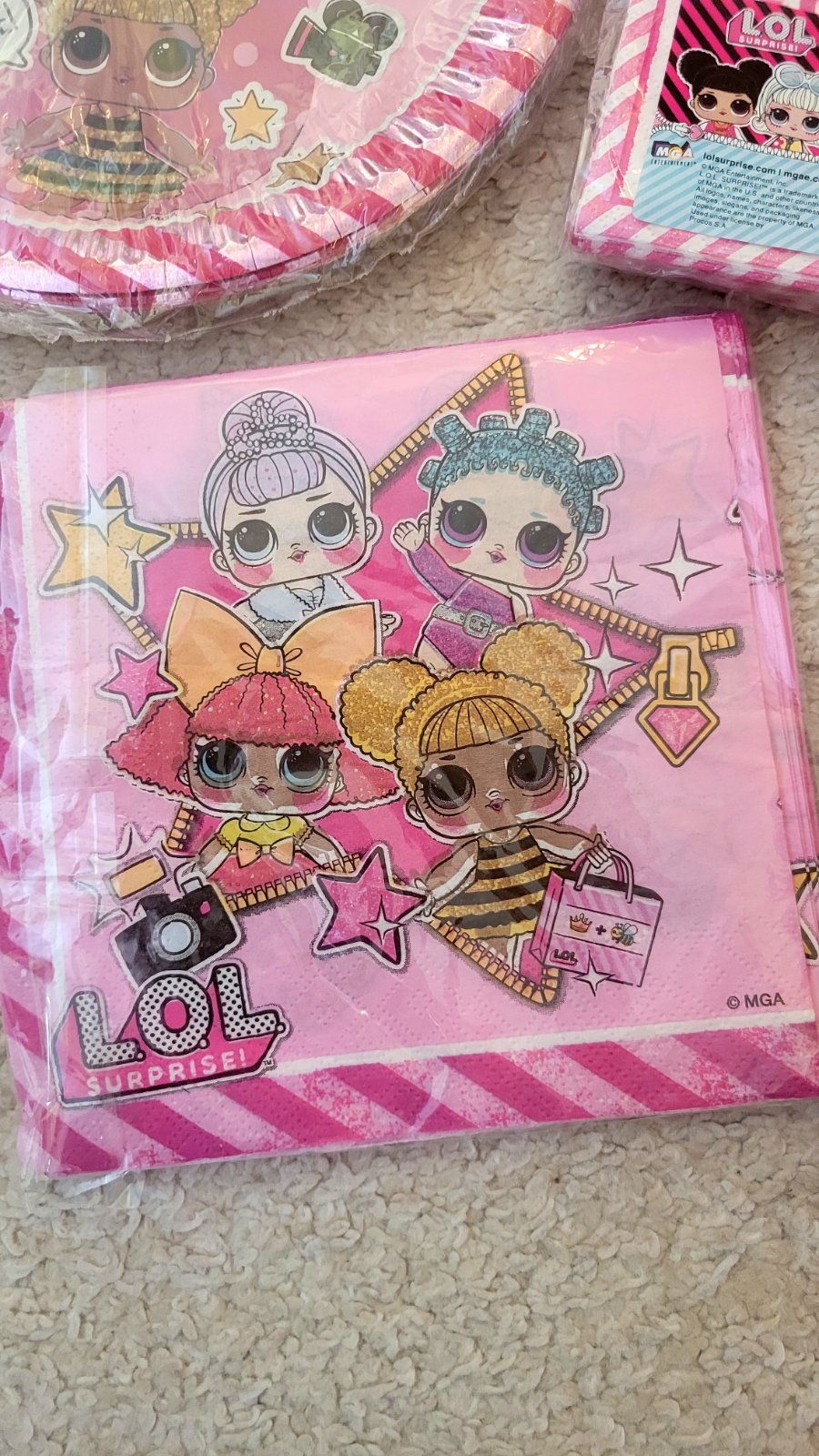 Predám party doplnky s motívom LOL. 2 x servítky LOL - jedny neotvorené 20ks, jedny otvorené 15 ks, taniere 8 ks, poháriky 8 ks, 2x nové zabalené slamky 2 x 4 ks.