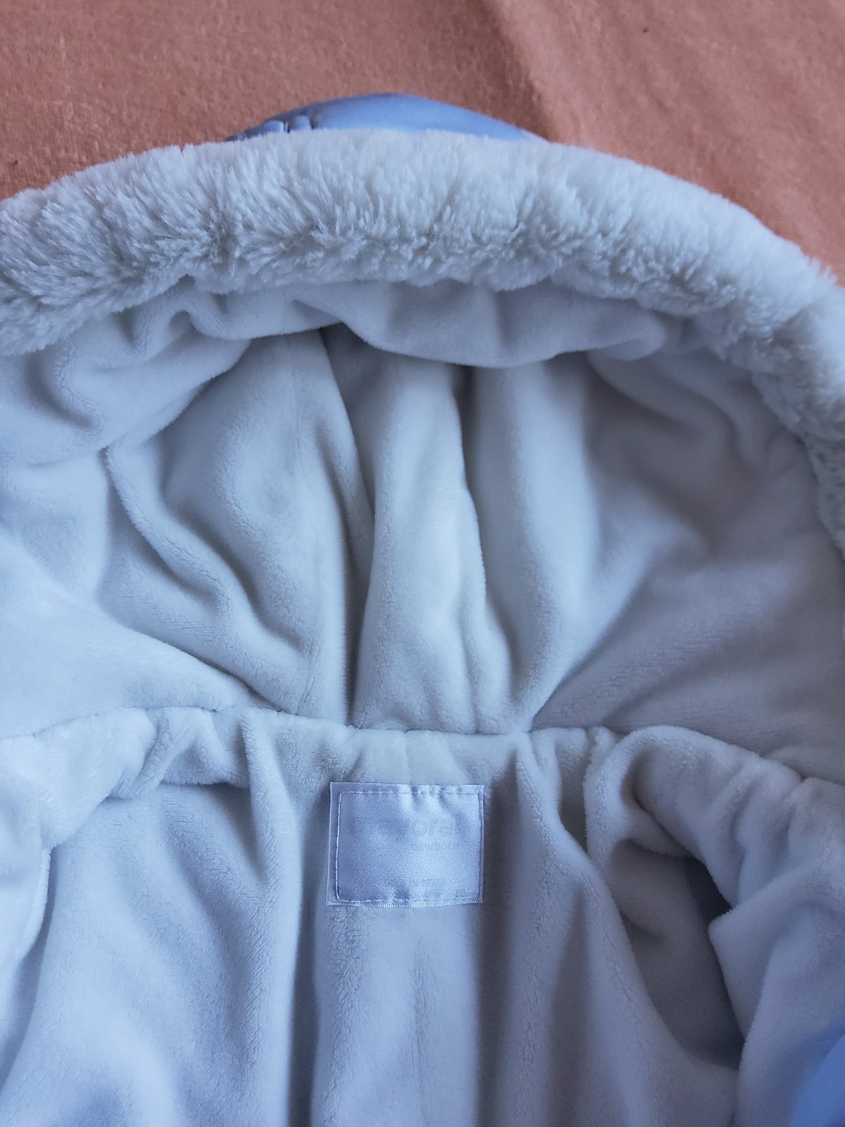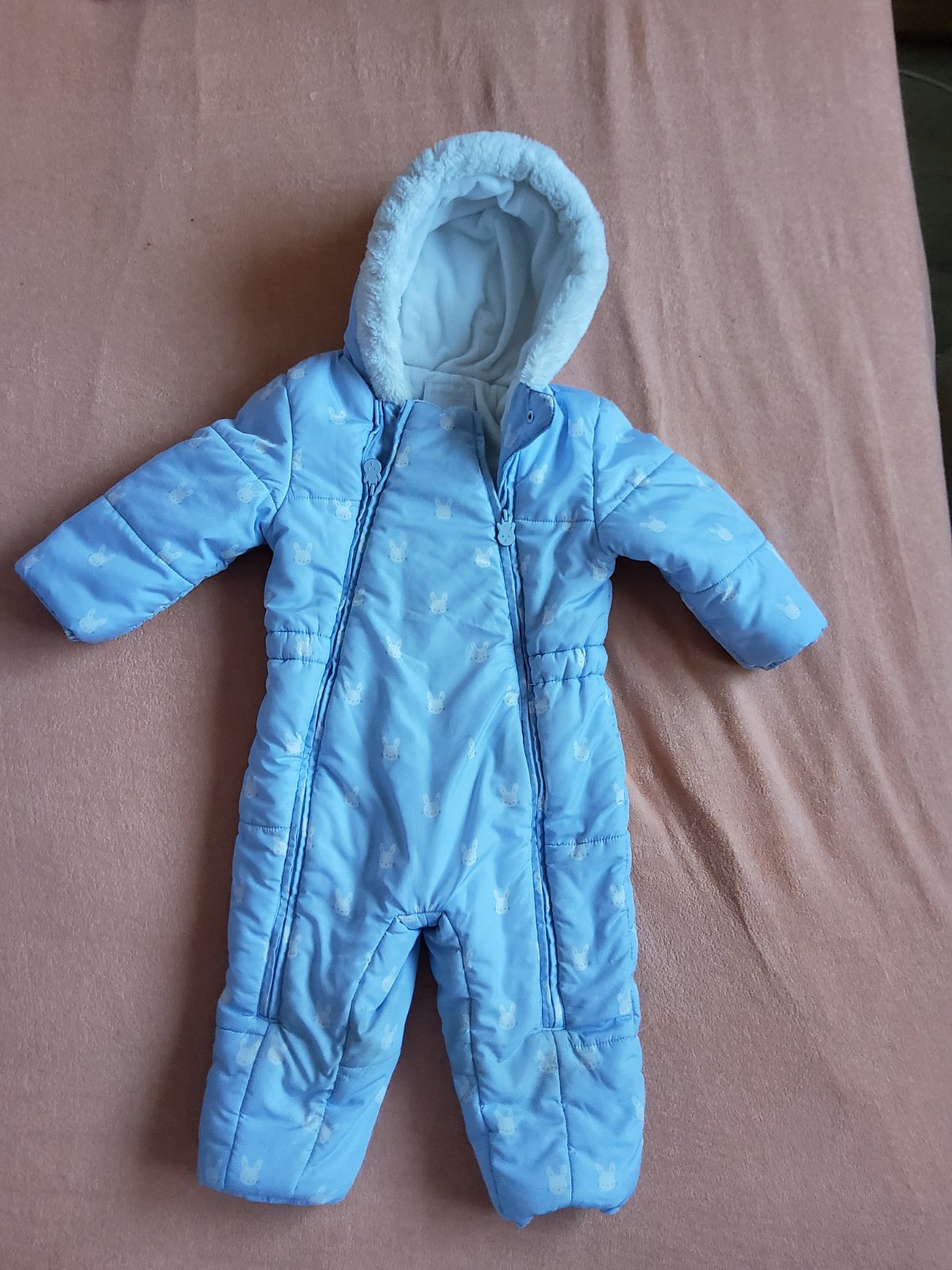 Krasny, teply, top stav, po 1 dietati, ziadne znamky nosenia, prijemny, makucky. Papucky a rukavicky k tomu.