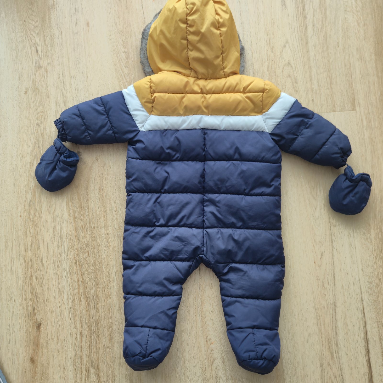 Pohodlný teply overal. Dobre sa oblieka ma dva zipsy.