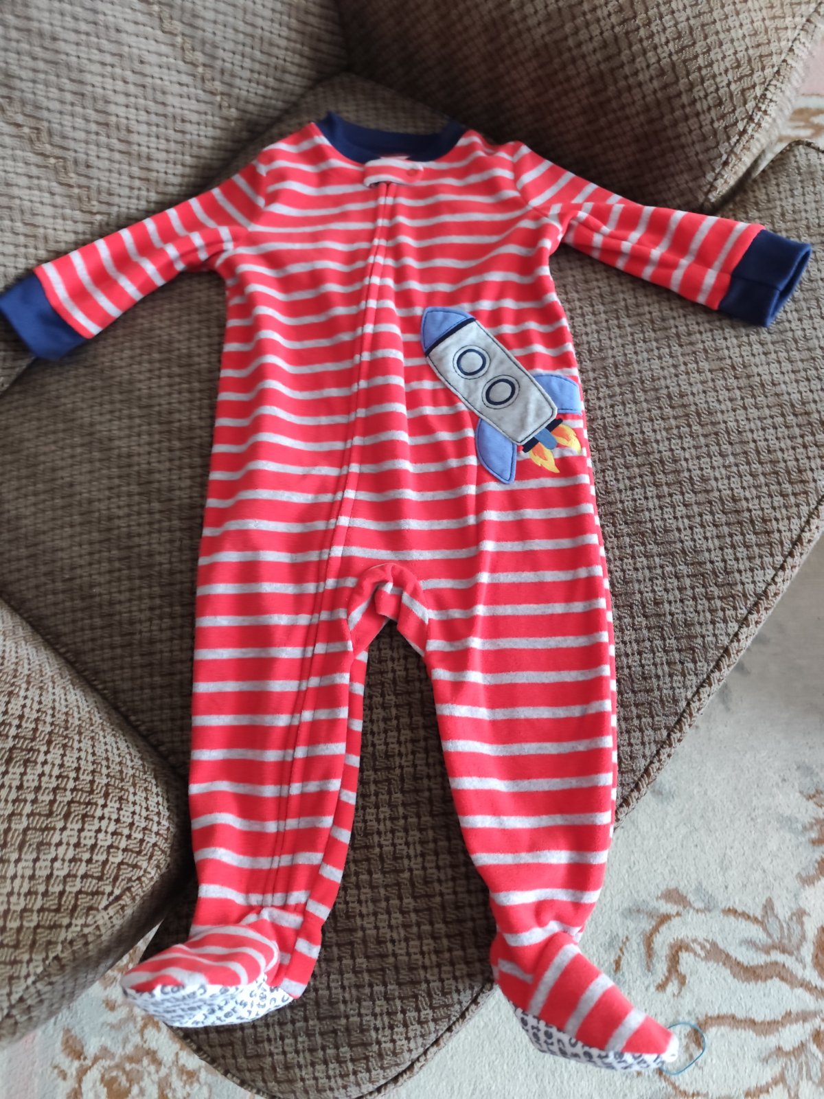 Predam krasny, jemnucko zatepleny overalik pre chlapceka. Je pre 12mesacne dietatko. Na chodidlach su tie nazvy carter's pogumovane. Zvrchu je teplejsi prijemny na dotyk material. Je pekne a prakticky prepracovany.