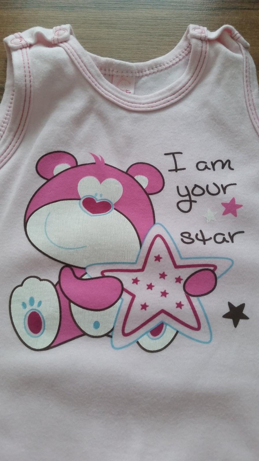 Pekný, málo nosený stav, pár minižmoliek vzadu na nožičkách, na potlači v bielej farbe pri natiahnutí prasklinky, pri nosení to nevidno. Značka Bobas.