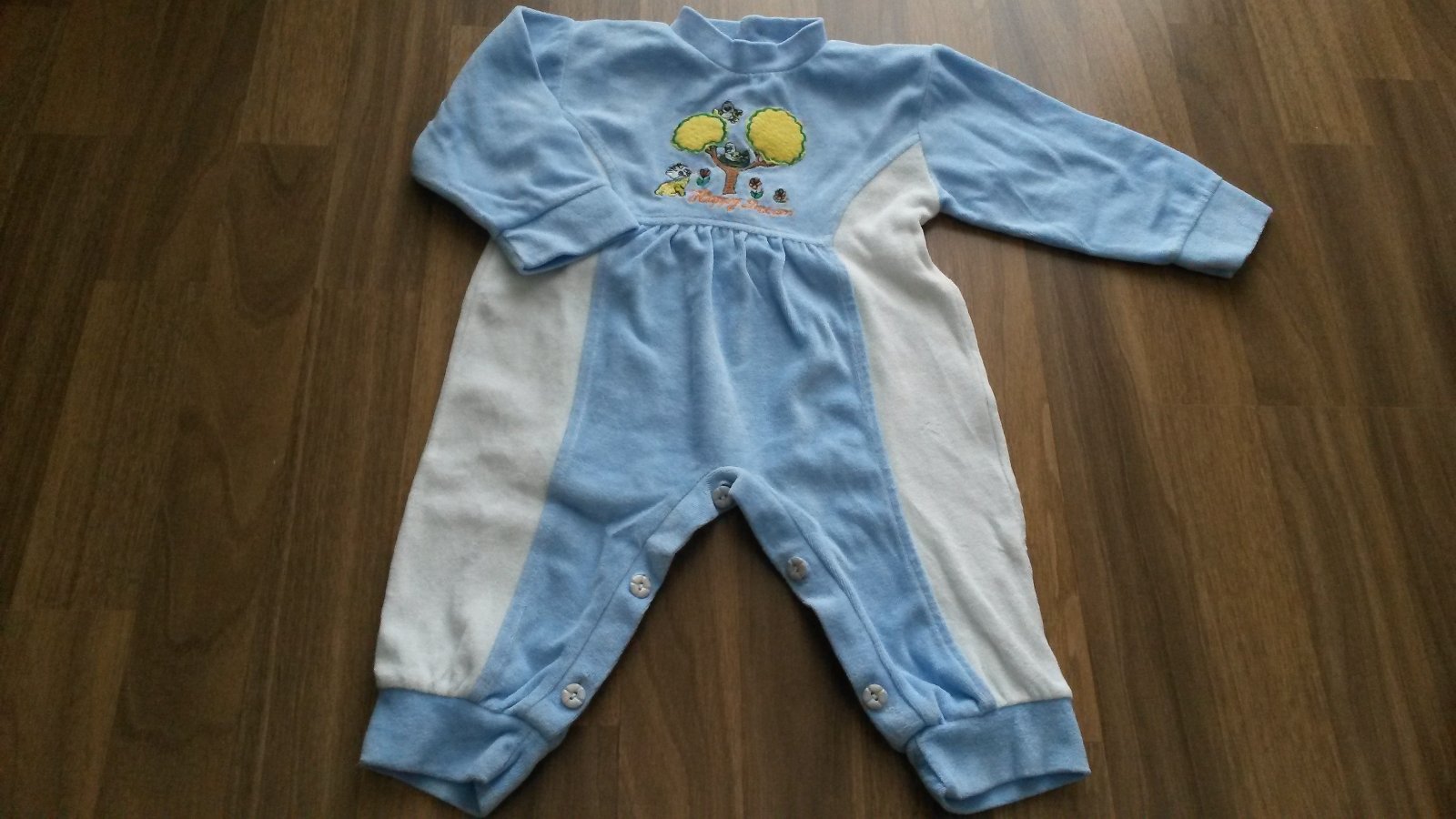 Overal z jemného mäkučkého flísu. Je v dobrom nosenom stave, bez fľakov a bez dier. Pri krku so zapínaním na 3 gombíky, dolu- na gombíky. Celková dĺžka- 52 cm, dĺžka rukáva od krku- 31,5 cm, vnútor.dĺžka rukáva- 19,5 cm, šírka- 28,5 cm x 2. Cena je bez poštovného.