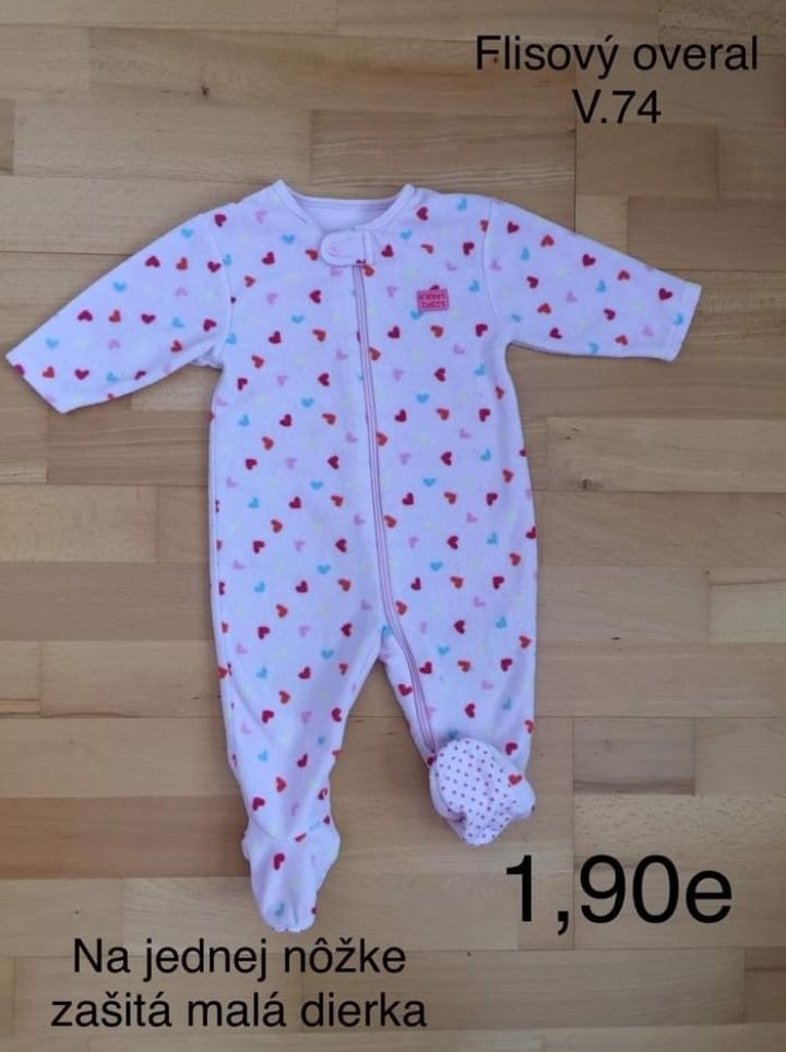 Pekný flísový overal v 74 na jednej nožke zašitá minidierka cena 1.90eu