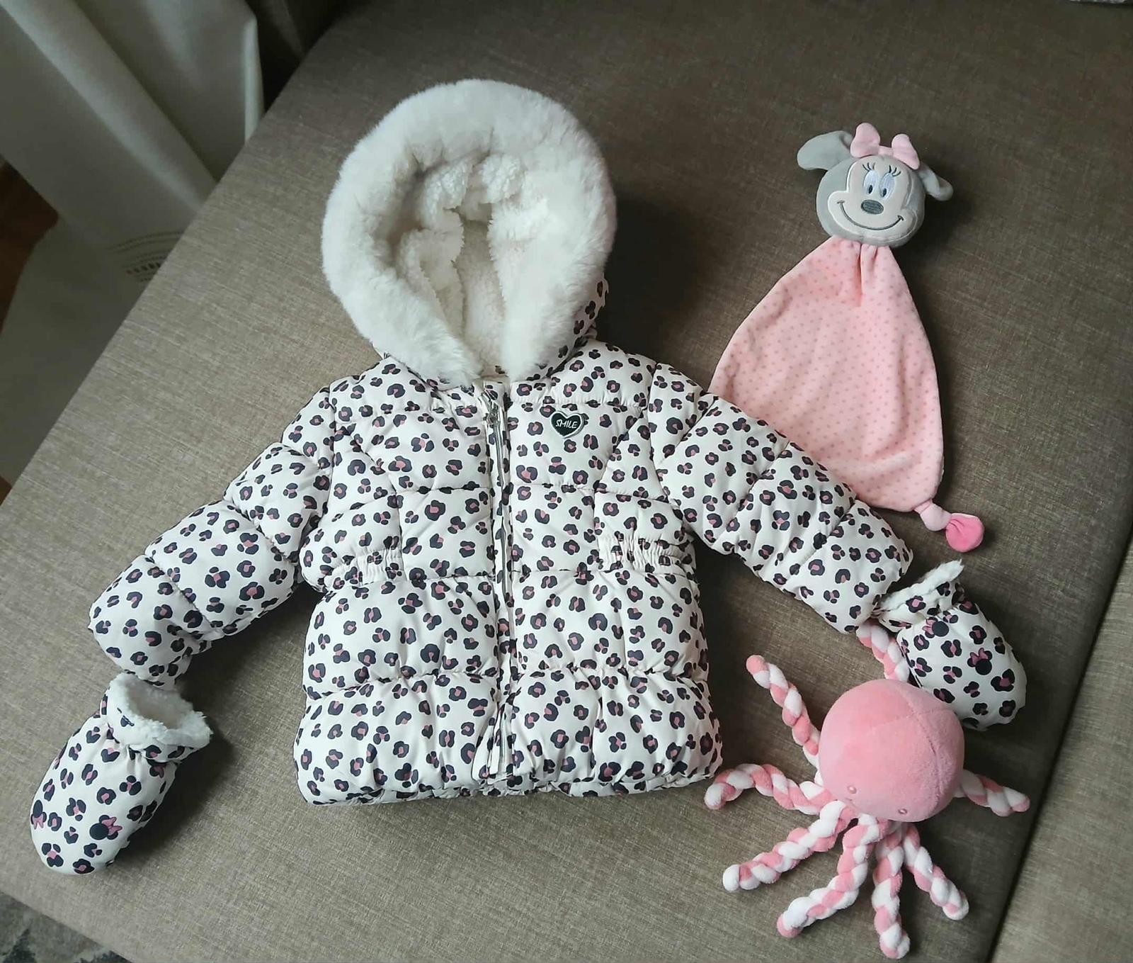 Krásna zimná bundička a overal s rukavičkami pre dievčatko, veľ.68. Bundička má celkovú dĺžku 33cm, šírka cez prsia je 30*2cm, dĺžka rukáva od ramenného šitia je 25cm. Overal má celkovú dĺžku 62cm, šírka cez prsia je 33*2cm, dĺžka rukáva od ramenného šitia je 24cm. K tomu darujem dve látkové hračky. Všetko výborný, čistý stav. Cena spolu 10Eur.