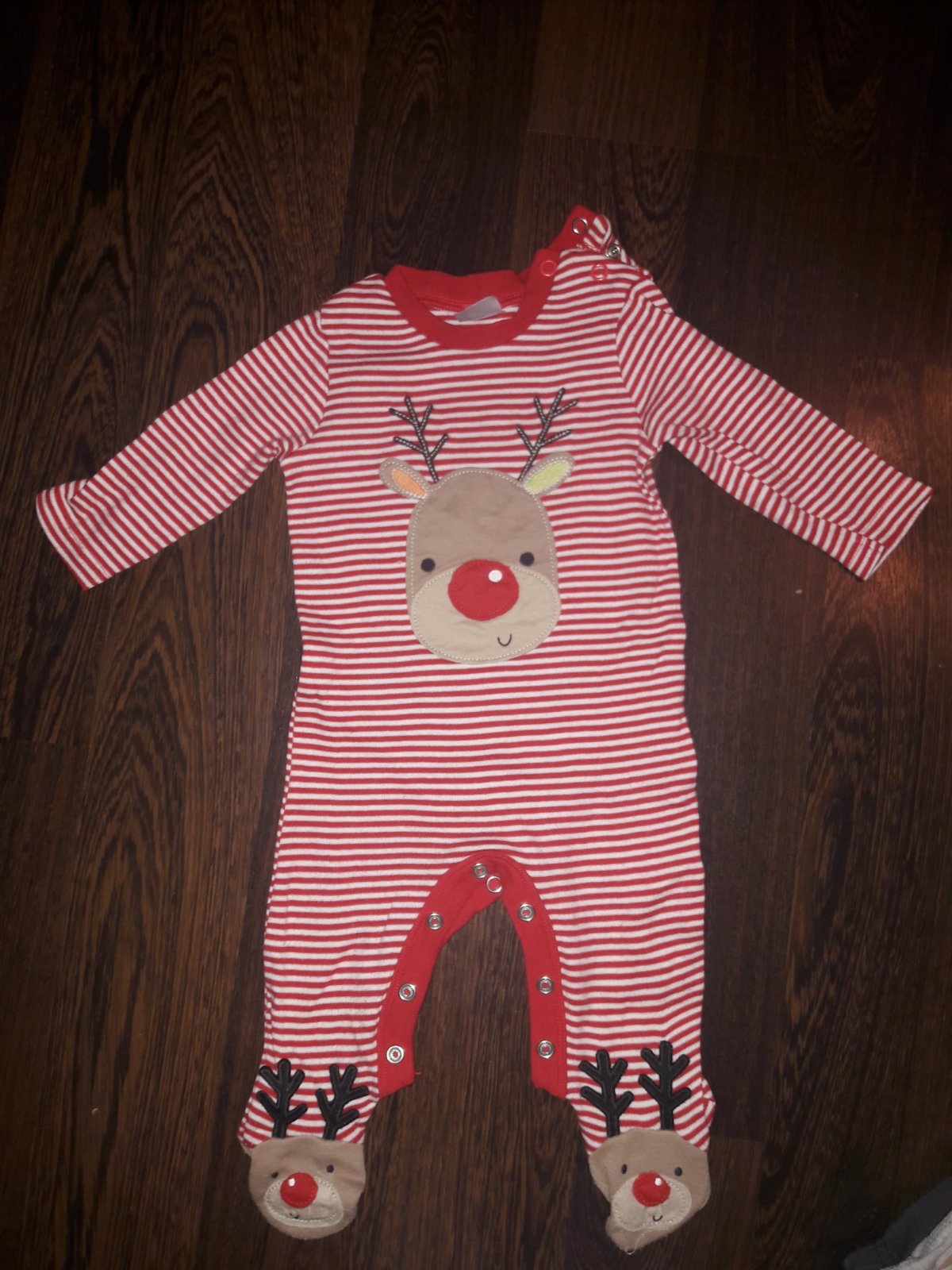 Červený overal nosený ale v dobrom stave.Velkosť 0/3m.