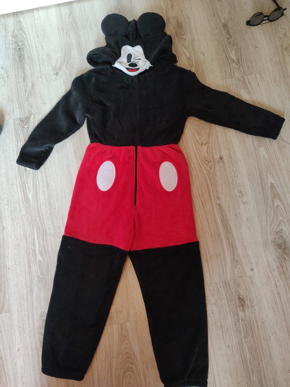 Posúvame plyšový overal Mickey . Oblečený raz, úspech mal iný s iným motívom . Vhodné napr.aj ako maska . Kapucňa je na suchý zips . Uvádzané ako dvojcislie 122/128