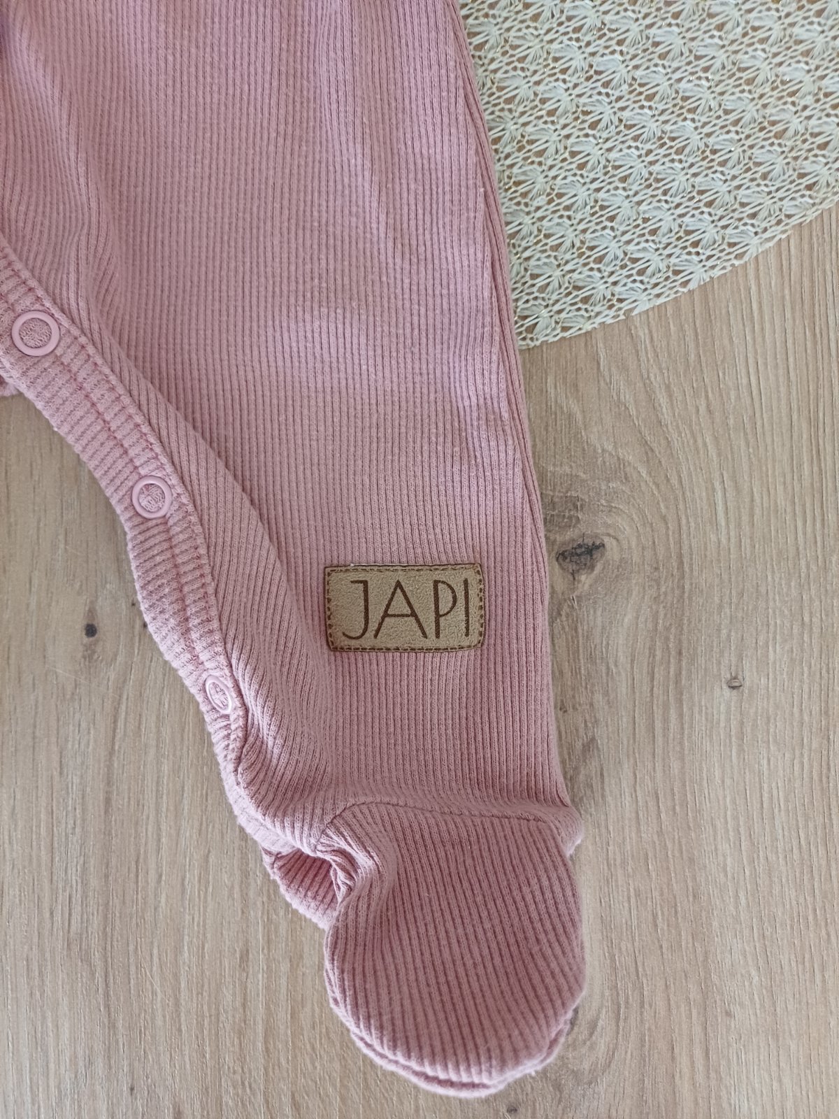 predam dupacky jemne rozovej farby v kombinacii s pasikavym detailom, na prednej strane aplikacia zirafky, velkost 62, zlozenie 100% bavlna, krasne su, slovensky vyrobok