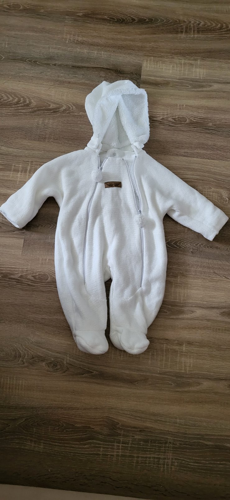 Pletený overal, zateplený jemnou kožušinkou z vnútra. Odopínateľná kapucňa. Nenosený bez vysačky, kupovaný na krstiny, ale vhodný aj na bežné používanie obdobie jar/leto