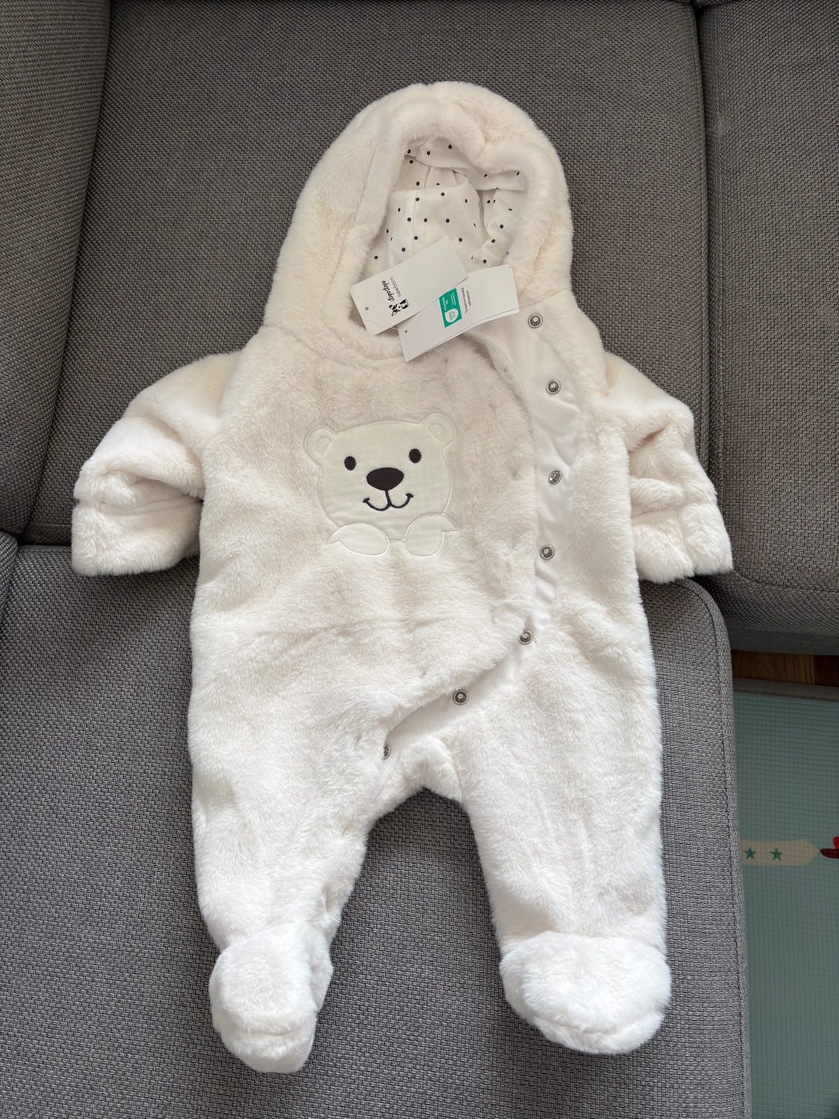 Predam novy/nepouzity overal do kocika v bielej farbe, s kapucnou, zapinanie na cvoky, vyhrnovacie palciaky, ktore udrzia ruky a nohy v teple.