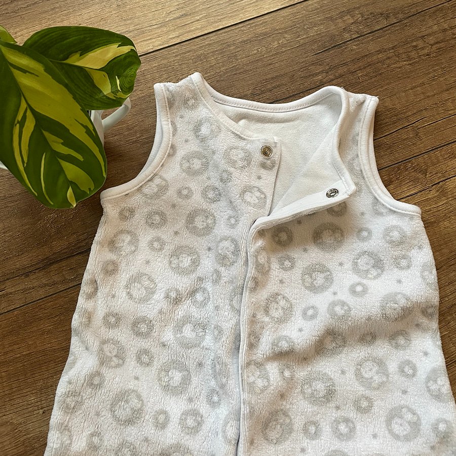 Posuniem ďalej biele dupačky so sivými macíkmi. Sú z druhej ruky. Náš synček mal väčšie nôžky, a tak sme ich vôbec nevynosili. Dupačky boli mnou oprané v prírodnom pracom prostriedku a odložené pre niekoho ďalšieho.