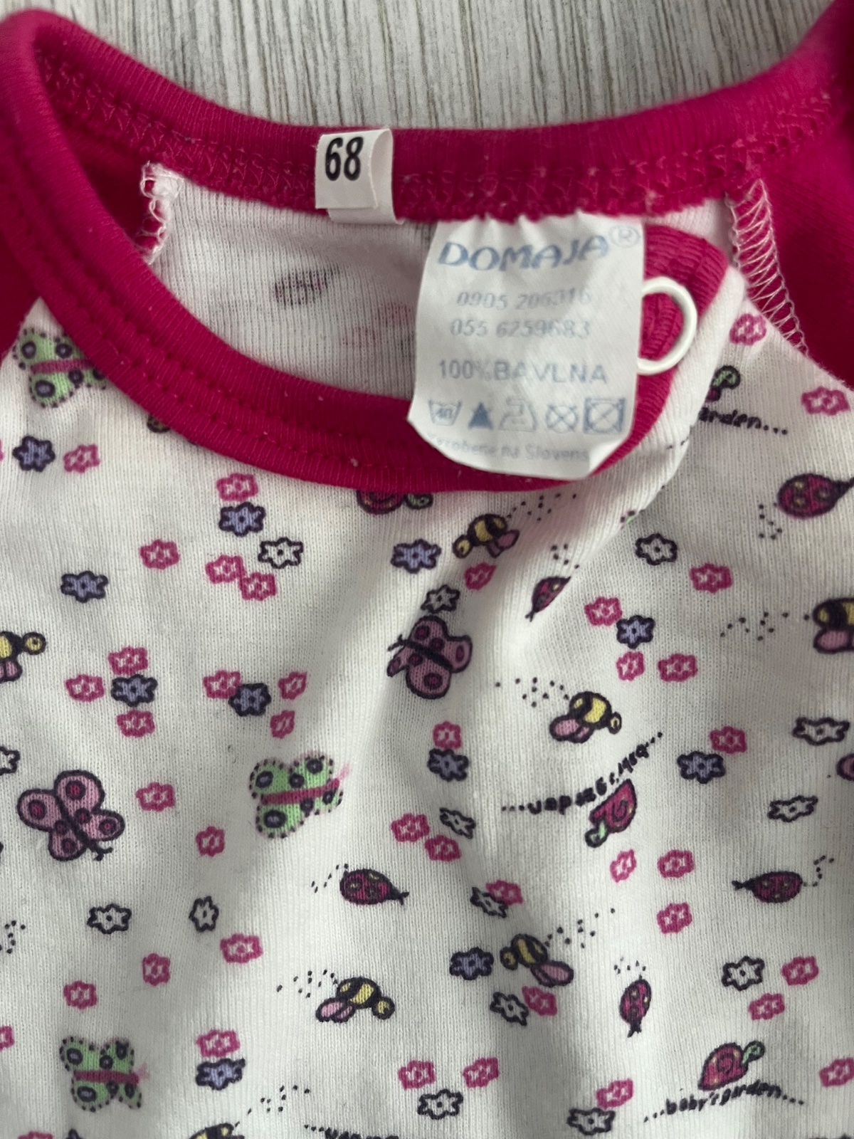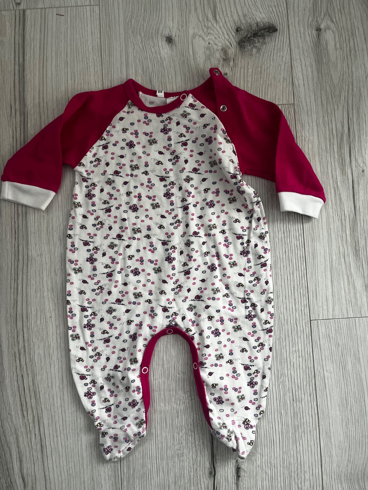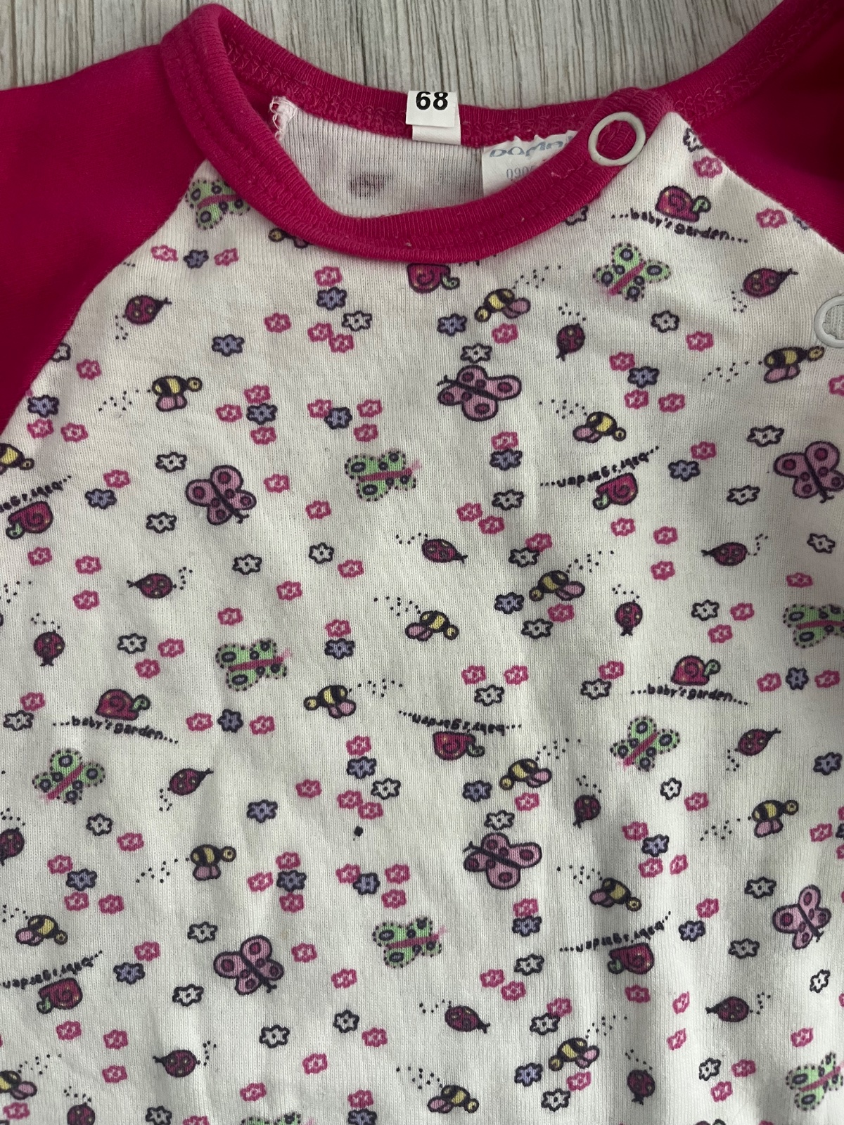Predám vzorované bielo-ružové dlhorukavove dupacky slovenskej značky Domaja, veľkosť: 68 (3-6 mesiacov)