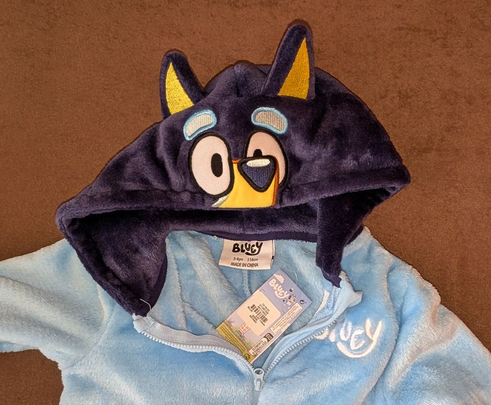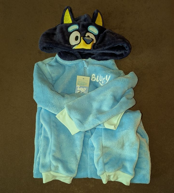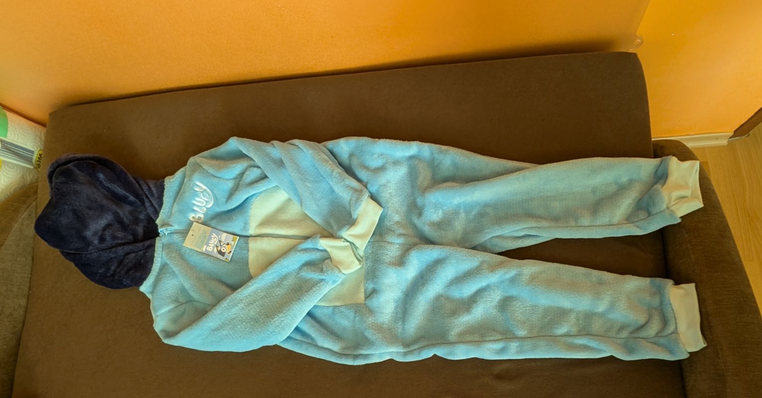Ponúkame teplý overal s kapucňou s motívom Bluey vo veľkosti 116 cm vo veľmi dobrom stave. Nestihli sme vynosiť.