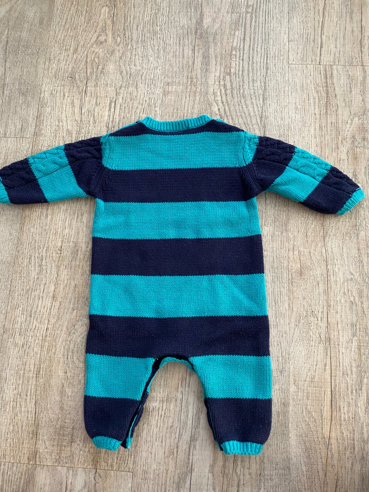 Pletený prechodný overal pre chlapčeka vo veľkosti 1-3 mesiace.