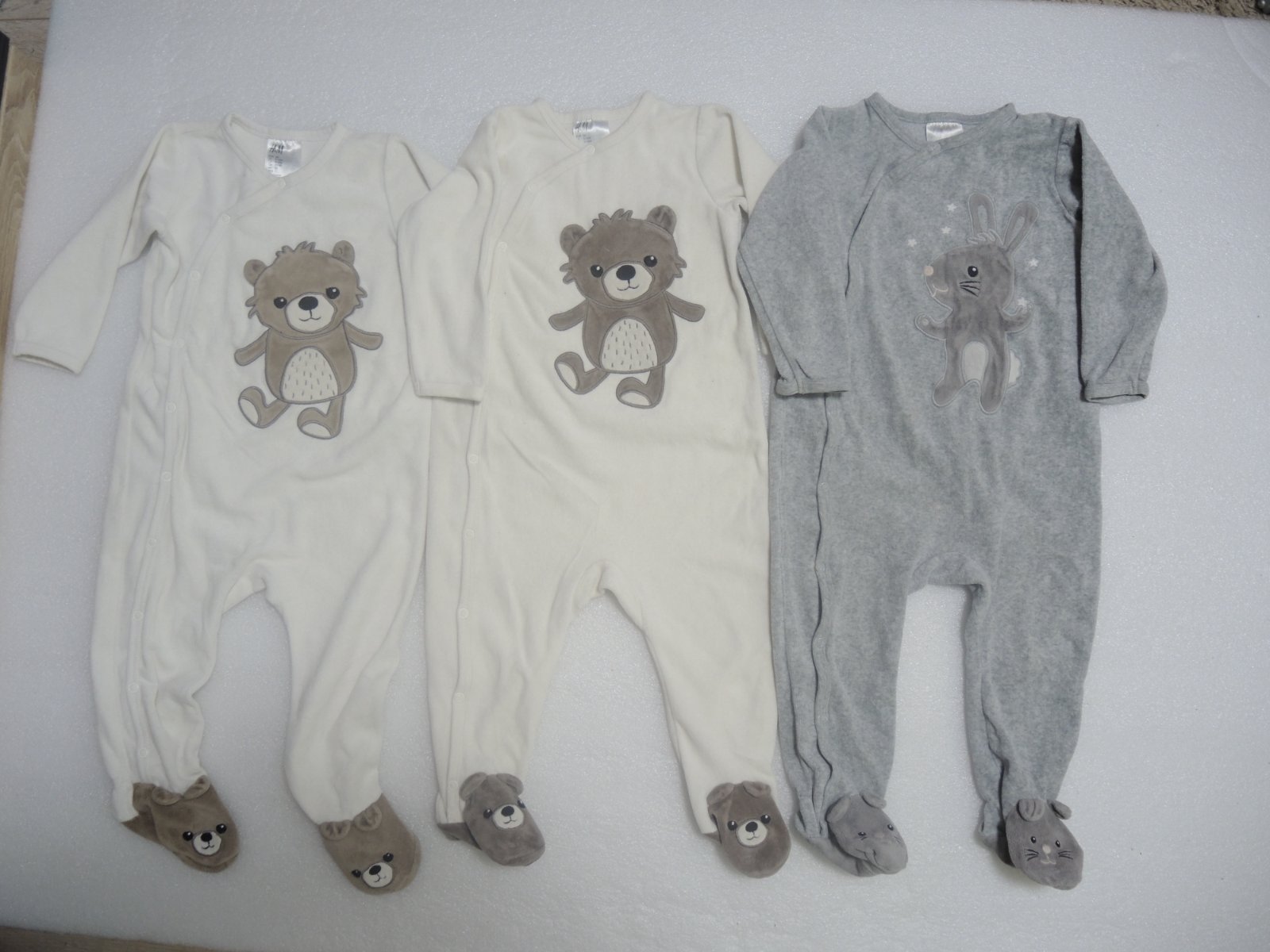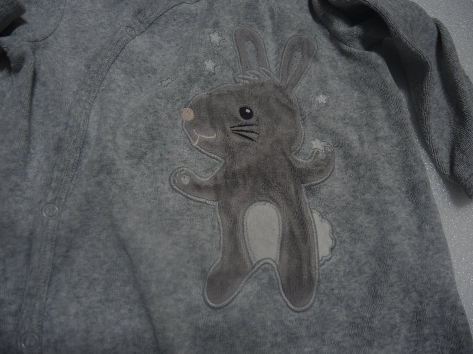 Predám 1 krásny svetlošedý teplý overalíky so zajačikom č 86, ale zodpovedá veľkosti overalíku č 80. Preto ho zaradzujem tu. ... Žiaľ už je vhodný len pre nenáročnú mamičku. Je stredne hrubý v peknom nosenom stave. Má však chybičku krásy. Bol nosený viac a trošička sa predralo miesto pri prštekoch na oboch stranách nožičiek. V mieste predratia je to zašité. Ak by to niekomu nevadilo, celý overalík je krásny, plne funkčný a sedí na veľkosť 80. Má dĺžku od pliecka po pätu je 71 cm a od pliecka po rozkrok je 46 cm. Cena je 3,50 eur.