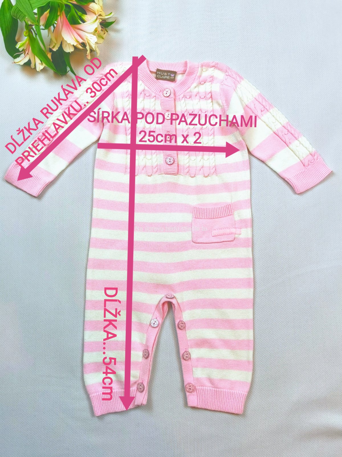 Ponúkam nádherný overalik pre dievčatko vo veľkosti 68/74 z hepkej pleteniny. Rozmery sú na konci prílohy.