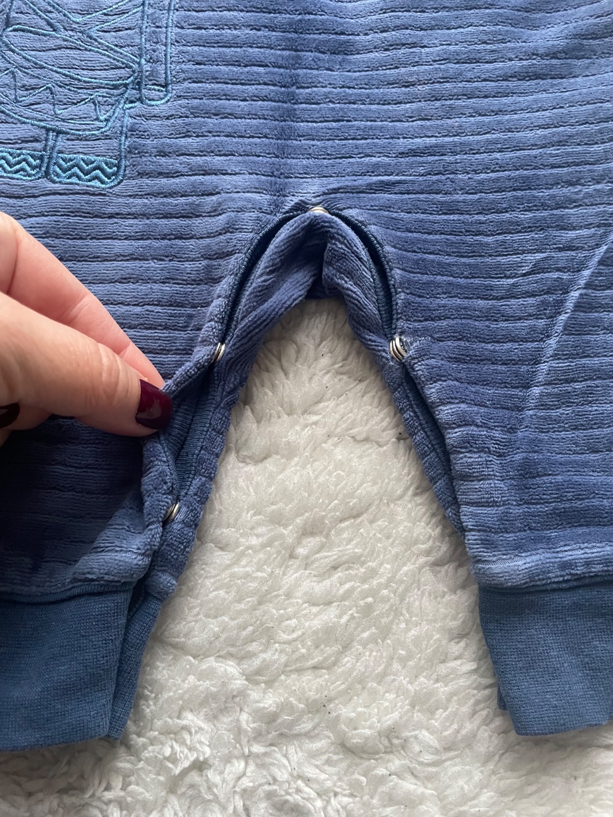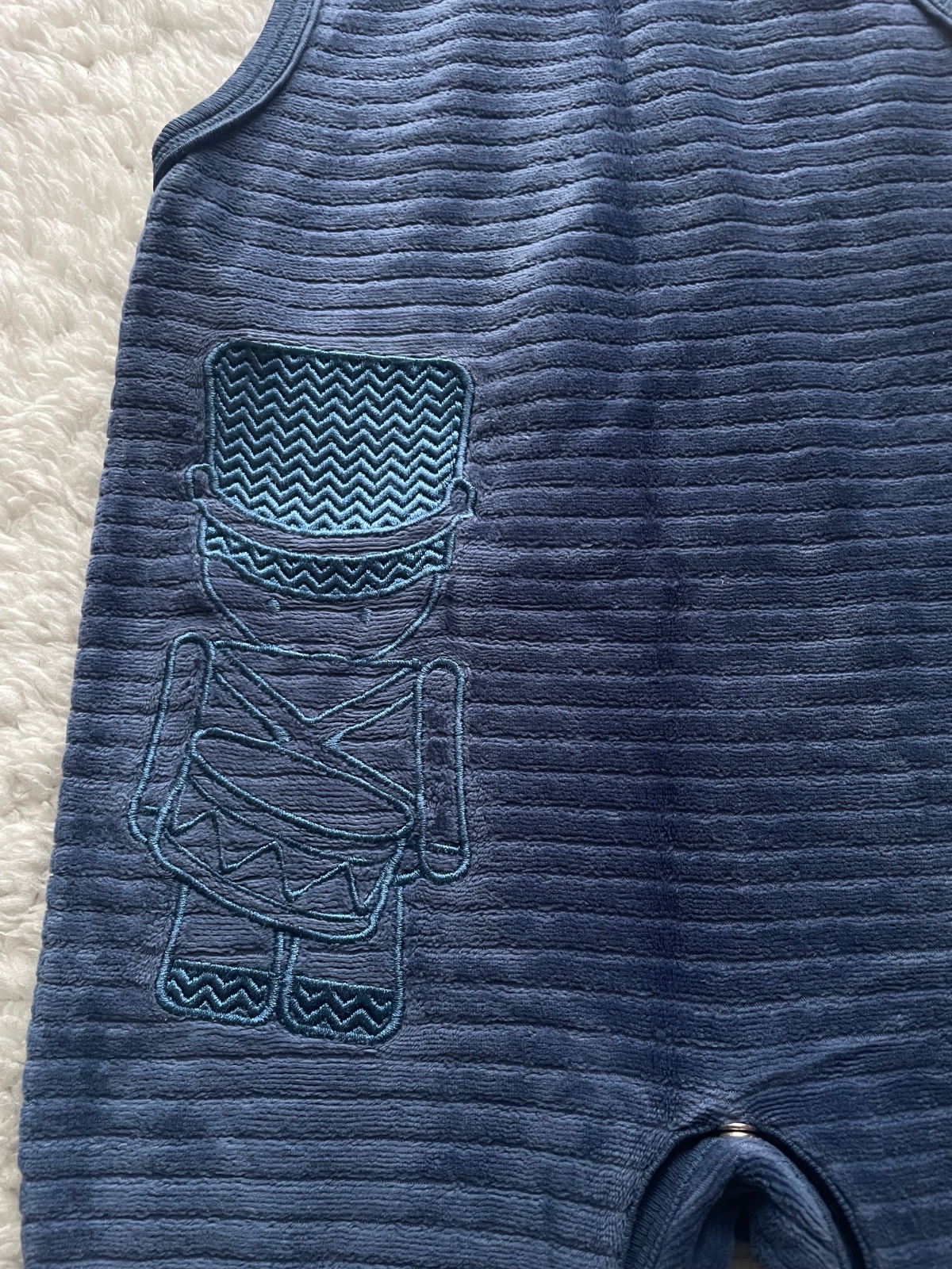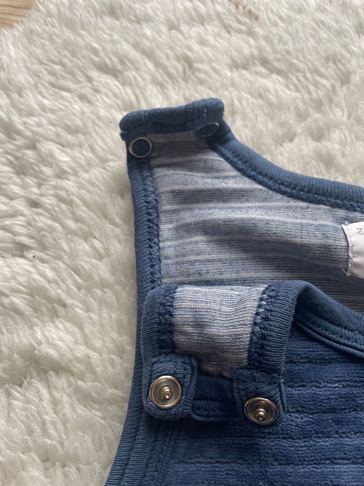 Modre frote dupacky na hrubsie ramienka s cvockami, s vysitym vojacikom, na cvocky aj medzi nozkami, velkost 2-4 m