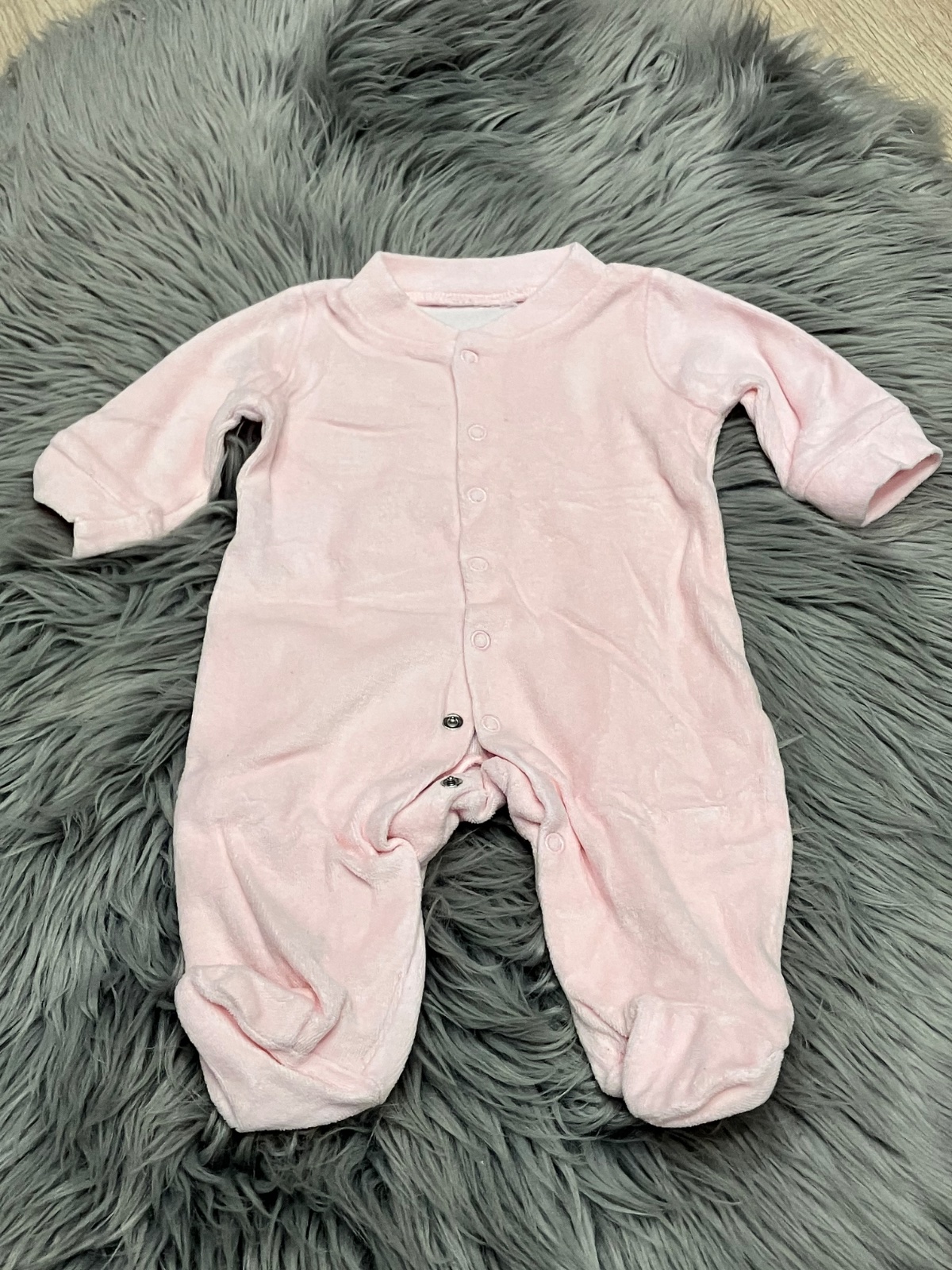 Dievčenský overal s dlhým rukávom, zamatový, elastický, zapínanie na cvoky, veľkosť cca 56.