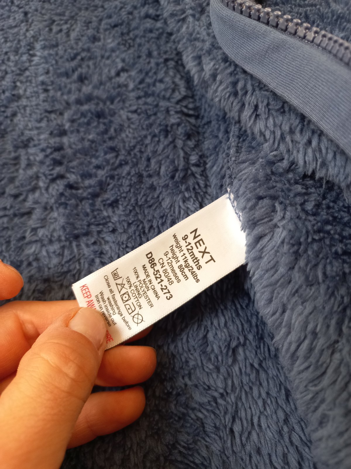 Predam noseny plysovy tensi overal znacky Next, velkost 80 (9-12m), noseny stav bez poskodenia, na niektorych miestach zlezane chlpky.