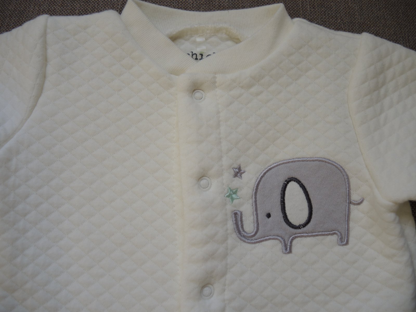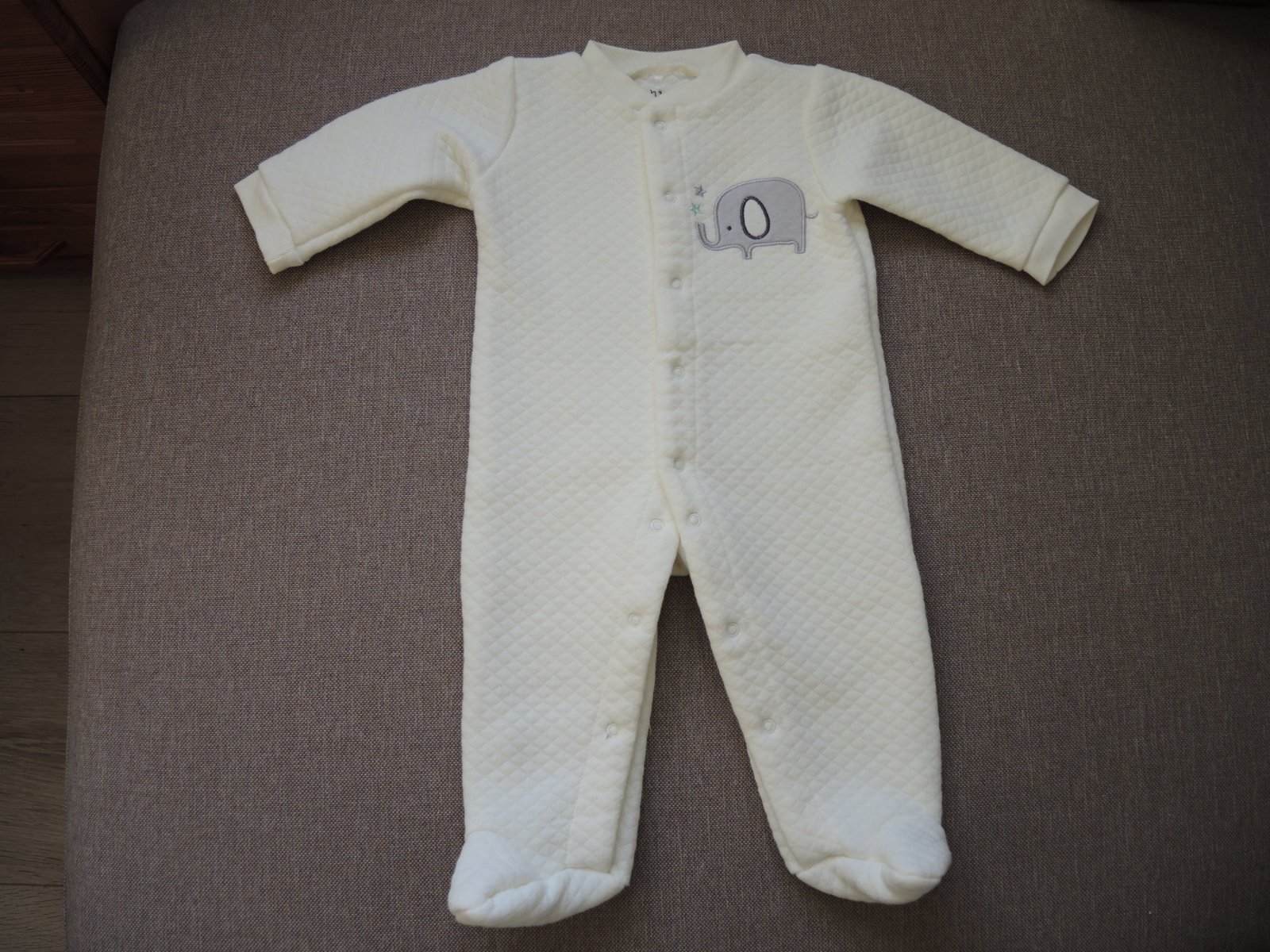 Predám prekrásny teplučký hrubší overalík so sloníkom zn. chick pea. Veľkosť je napísaná 6-9 m, ale reálne zodpovedá veľkosti 62. Bol iba opratý a raz vyskúšaný a už nám boľ žiaľ vo veľkosti 68 malý. Žiaľ. Kupovaný bol nový, takže top stav. Je veľmi jemnulinký, príjemný na nosenie. Zapínanie je na pukačky. Odporúčam. Dĺžka od pliecka po pätu je 55 cm a od pliecka po rozkrok 38 cm.